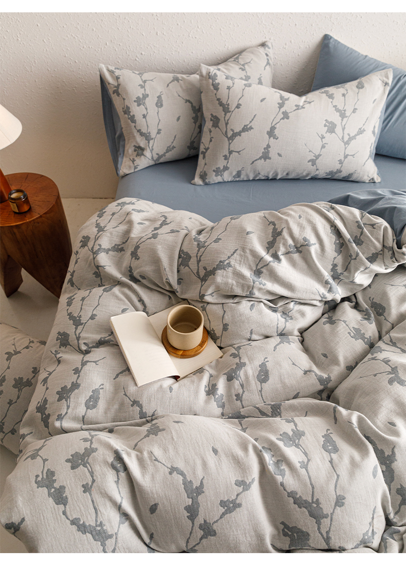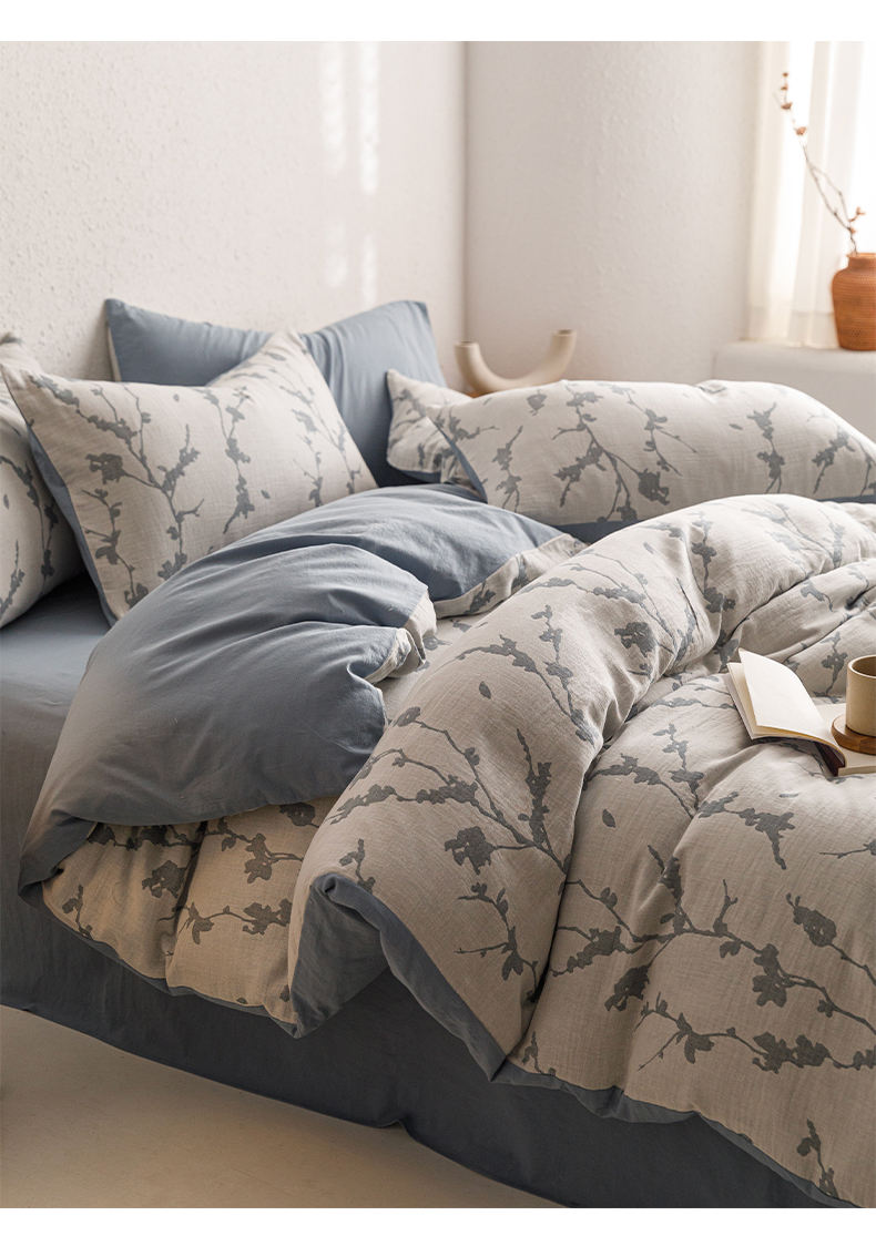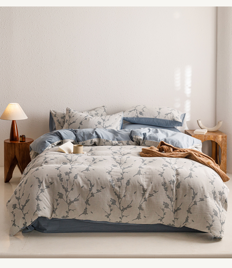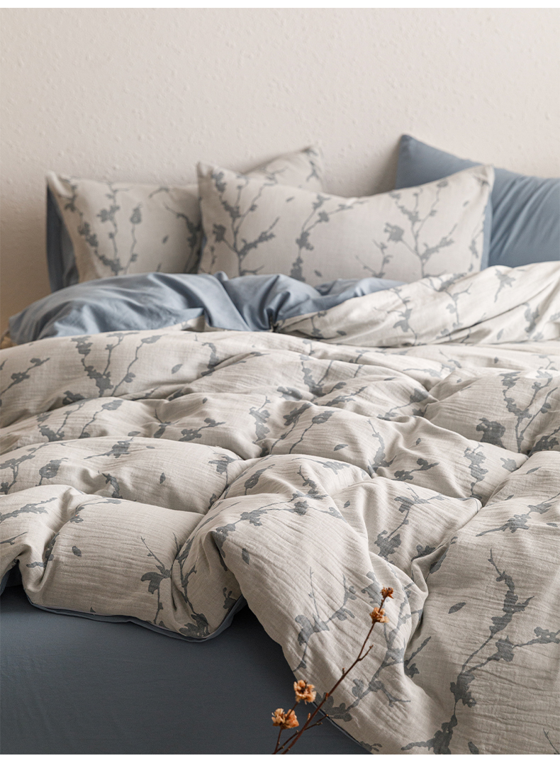商品名称:雅居纺家纺 2024新款双层纱色织提花四件套 初春-蓝