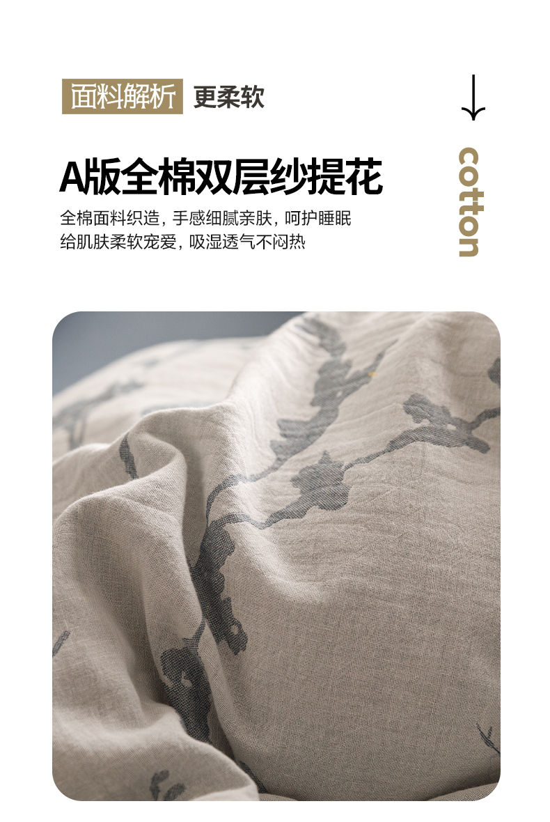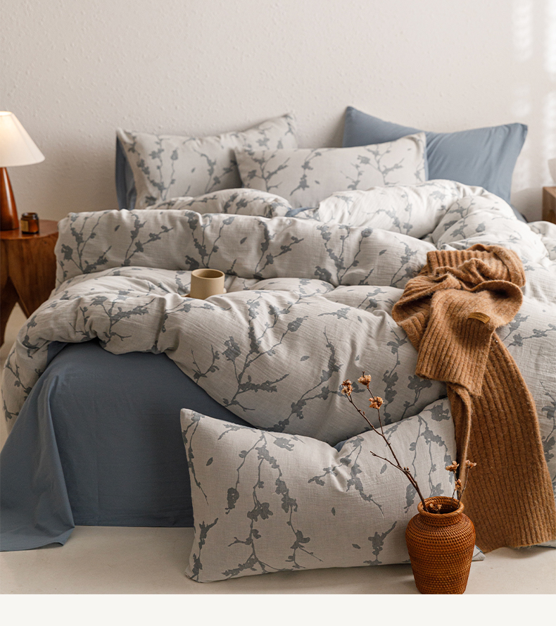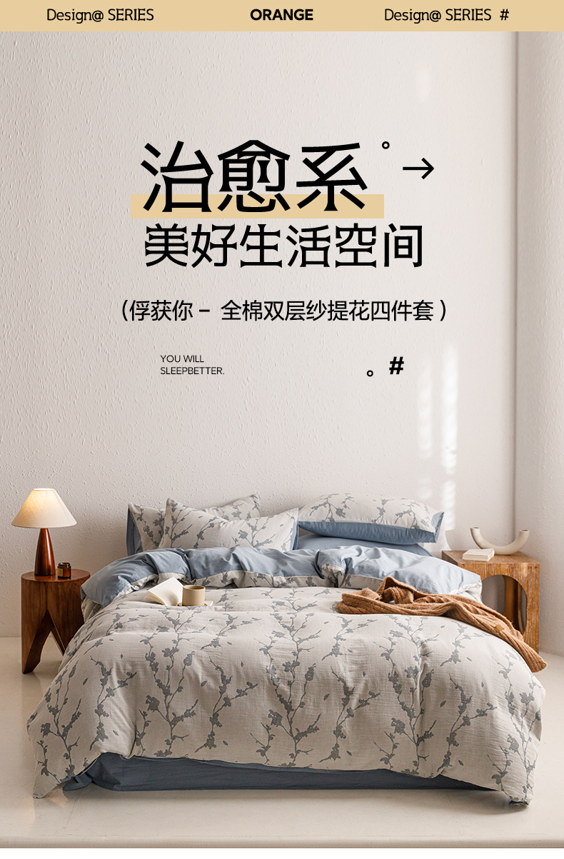 雅居纺家纺 2024新款双层纱色织提花四件套 初春-蓝