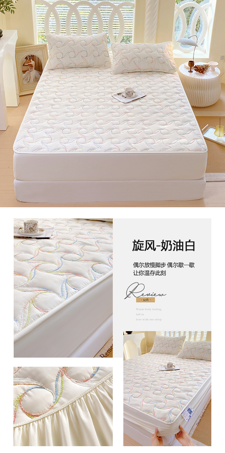 尊康家纺(原磊科) 2024新款奶昔棉抗菌夹棉床笠-旋风 旋风-奶油白