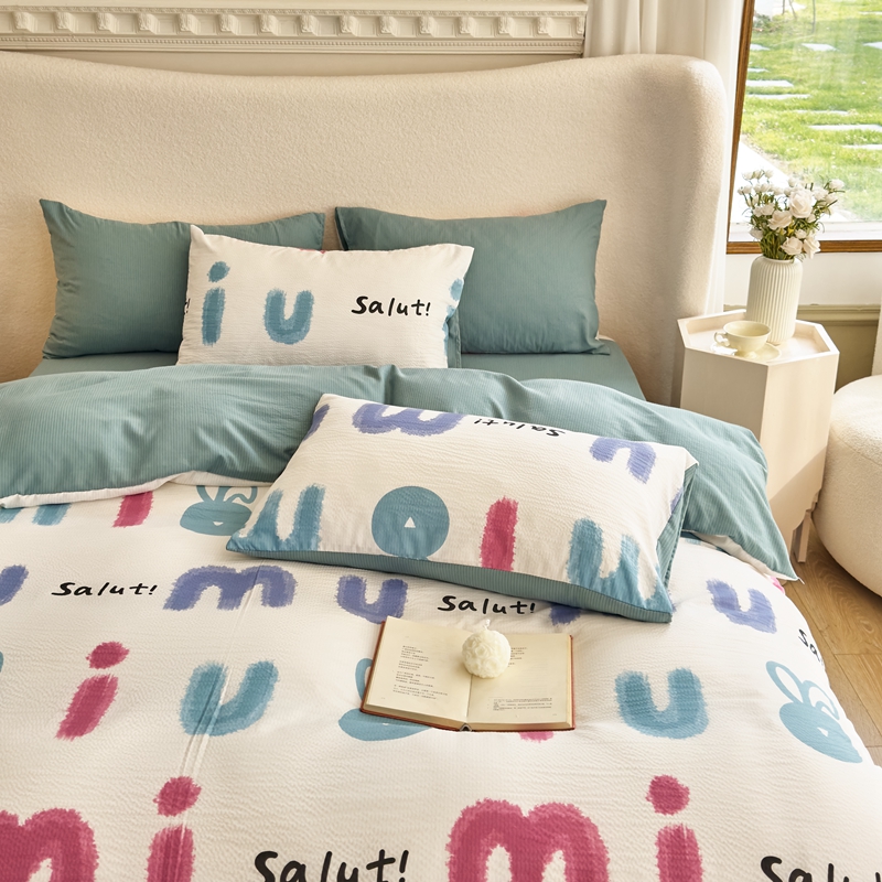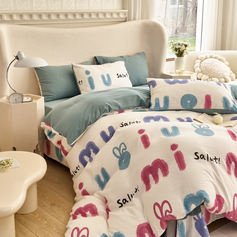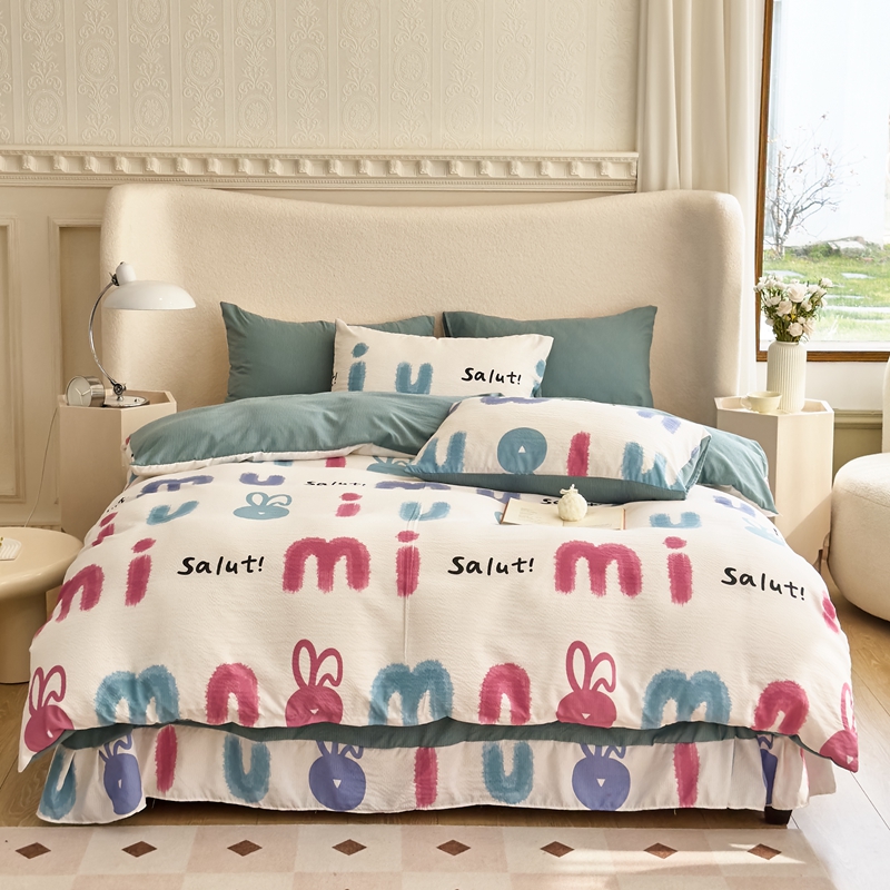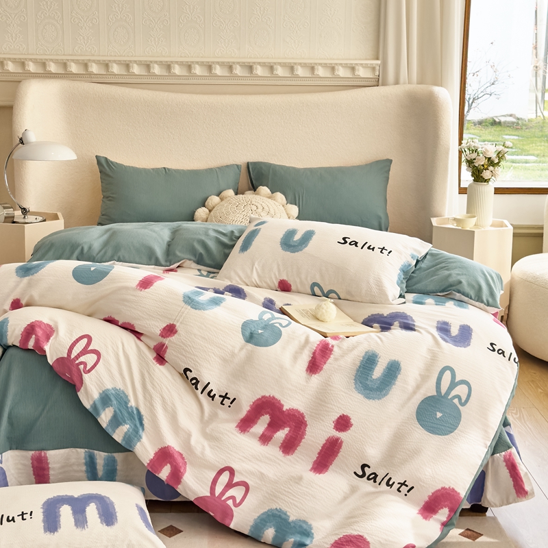 富之航家纺 2024新款提花泡泡棉四件套 七彩兔