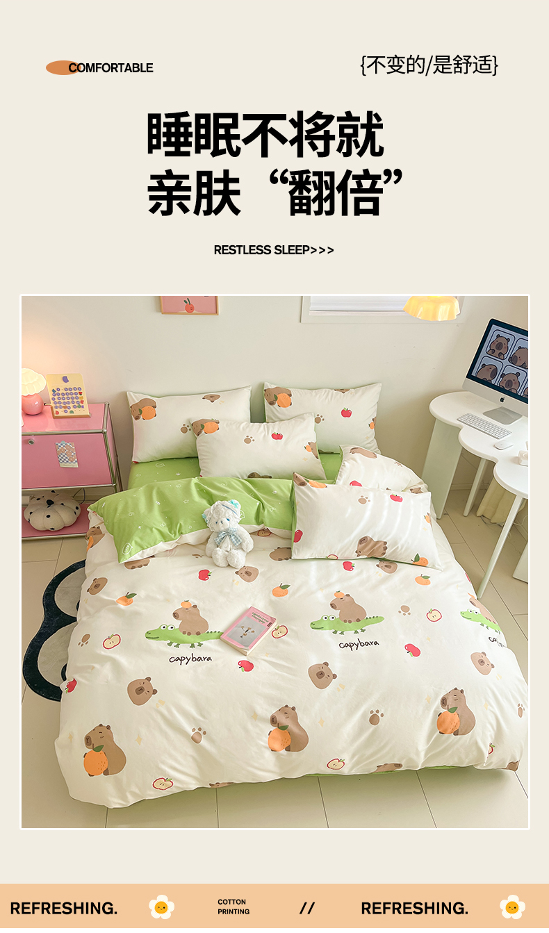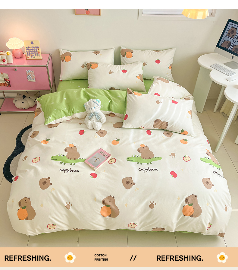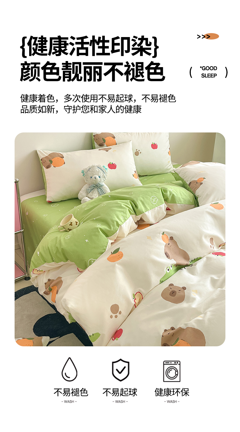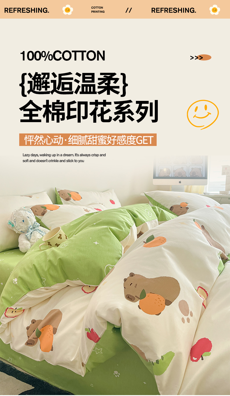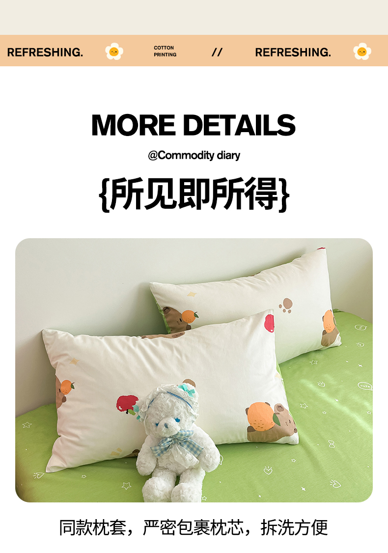 商品名称:蓝邻家纺 2024新款全棉印花萌趣类四件套 皮卡