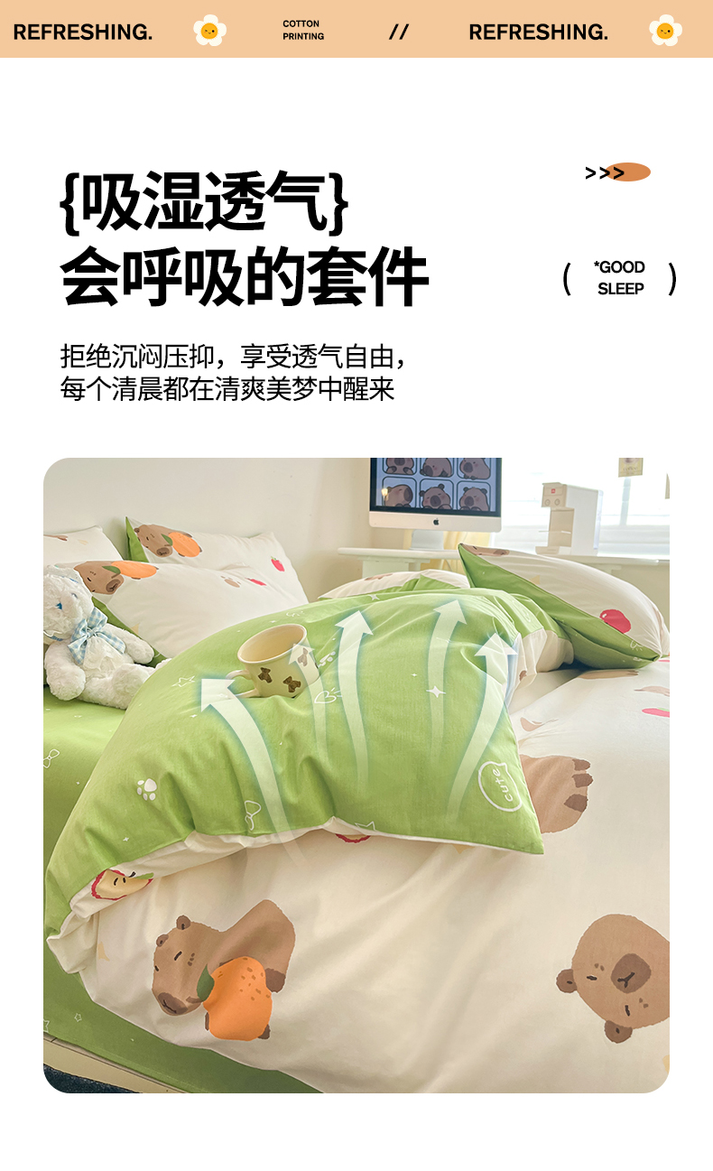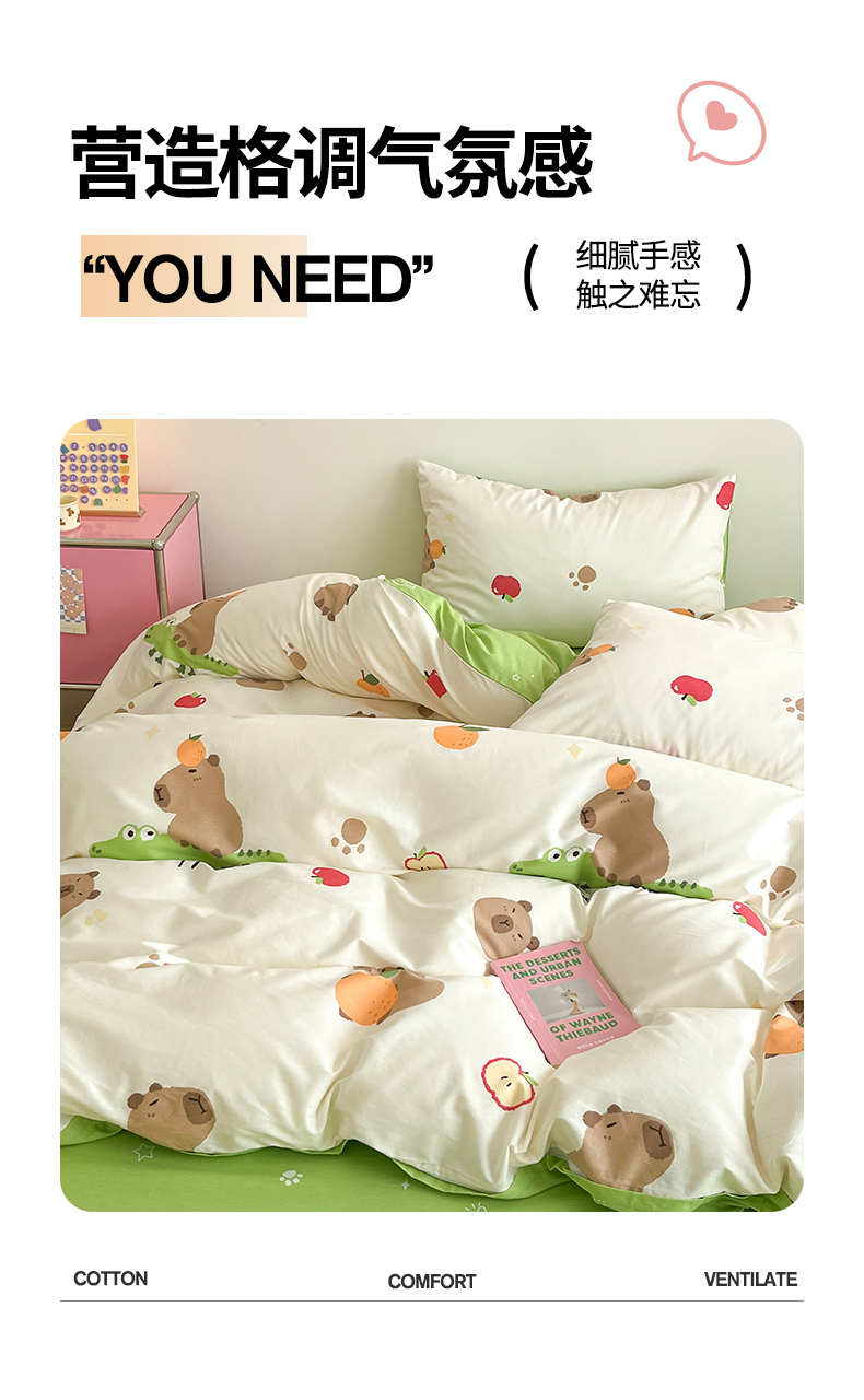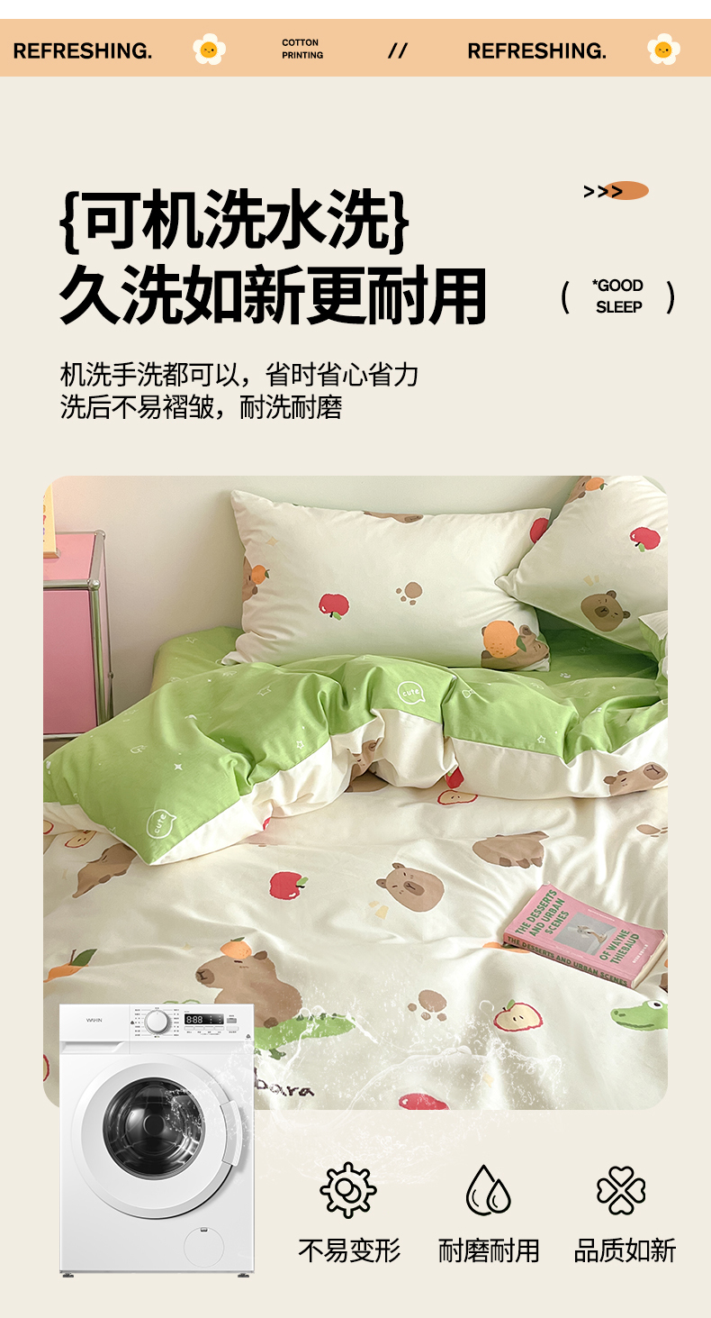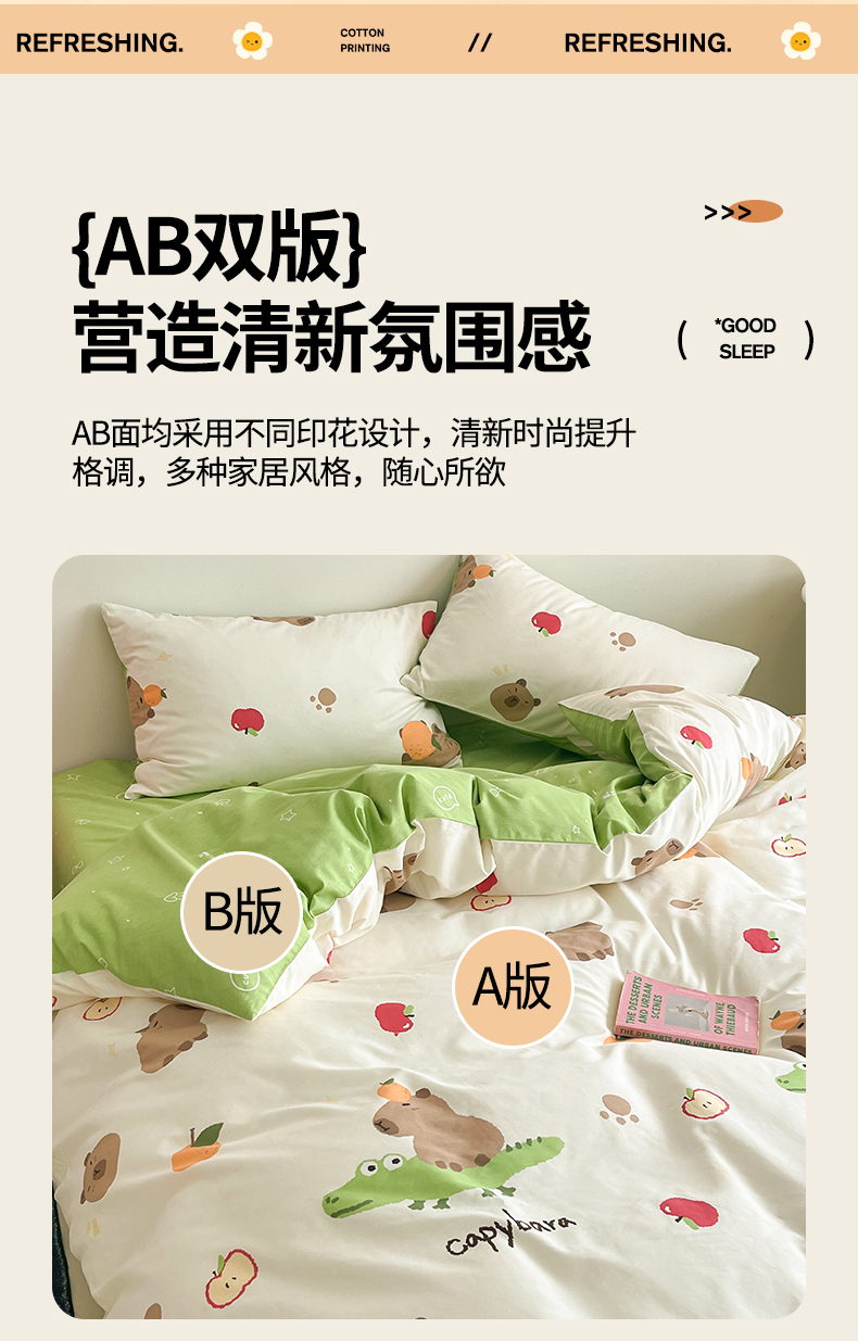 商品名称:蓝邻家纺 2024新款全棉印花萌趣类四件套 皮卡