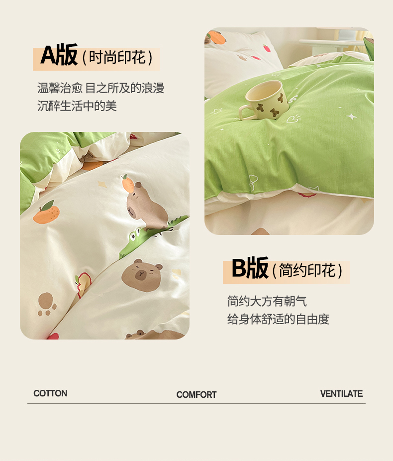 (总)蓝邻家纺 2024新款小清新印花全棉四件套学生宿舍三件套,茶园兔,风翩,机灵兔熊,可妮露,藤蔓兔,筱薇