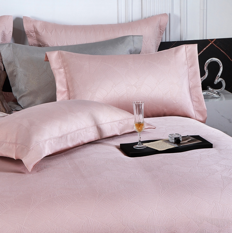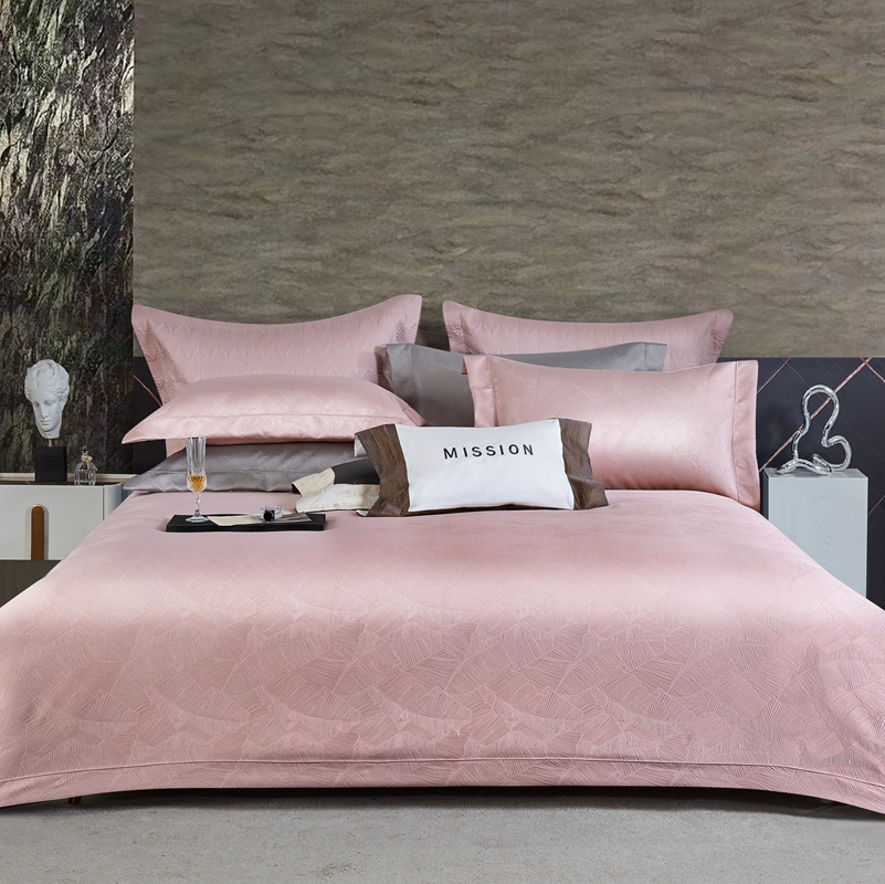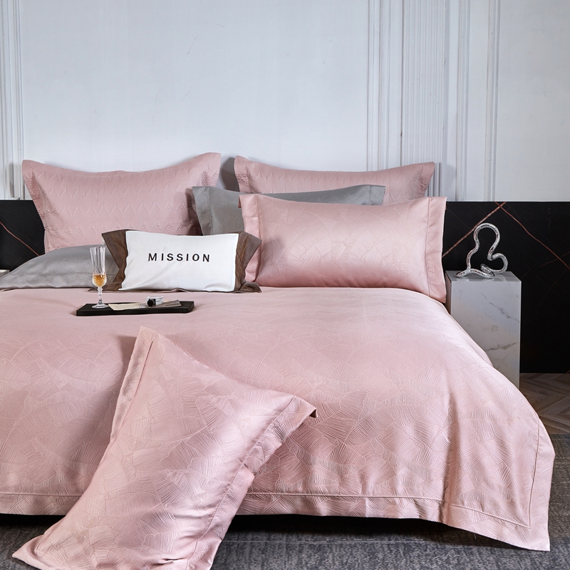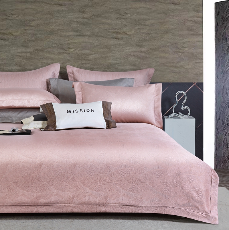 商品名称:时亿家居 2024新款色织厚织提花长绒棉四件套-凯悦 凯悦-甜蜜粉