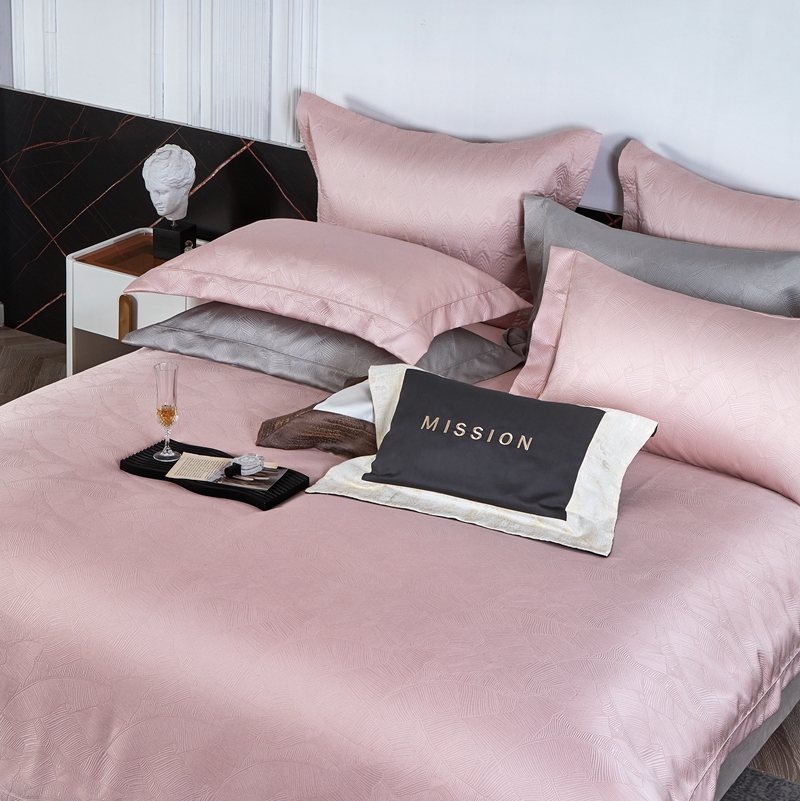 时亿家居 2024新款色织厚织提花长绒棉四件套-凯悦 凯悦-甜蜜粉
