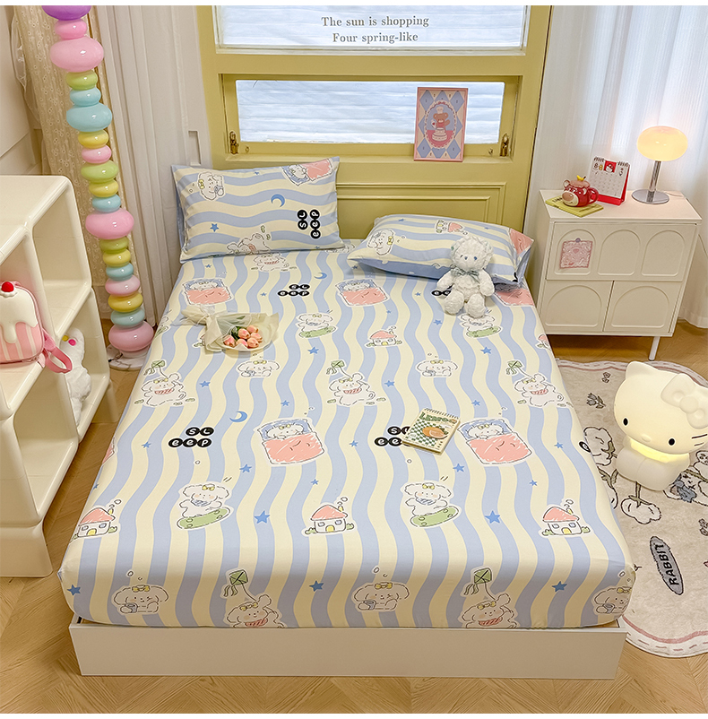 (总)蓝邻家纺 2024新款三丽鸥正版授权学生宿舍全棉印花四件套,甜甜库洛米,粉格美乐蒂,米酷粉,米酷紫,妙可乐园,牛奶大耳狗,玉桂狗