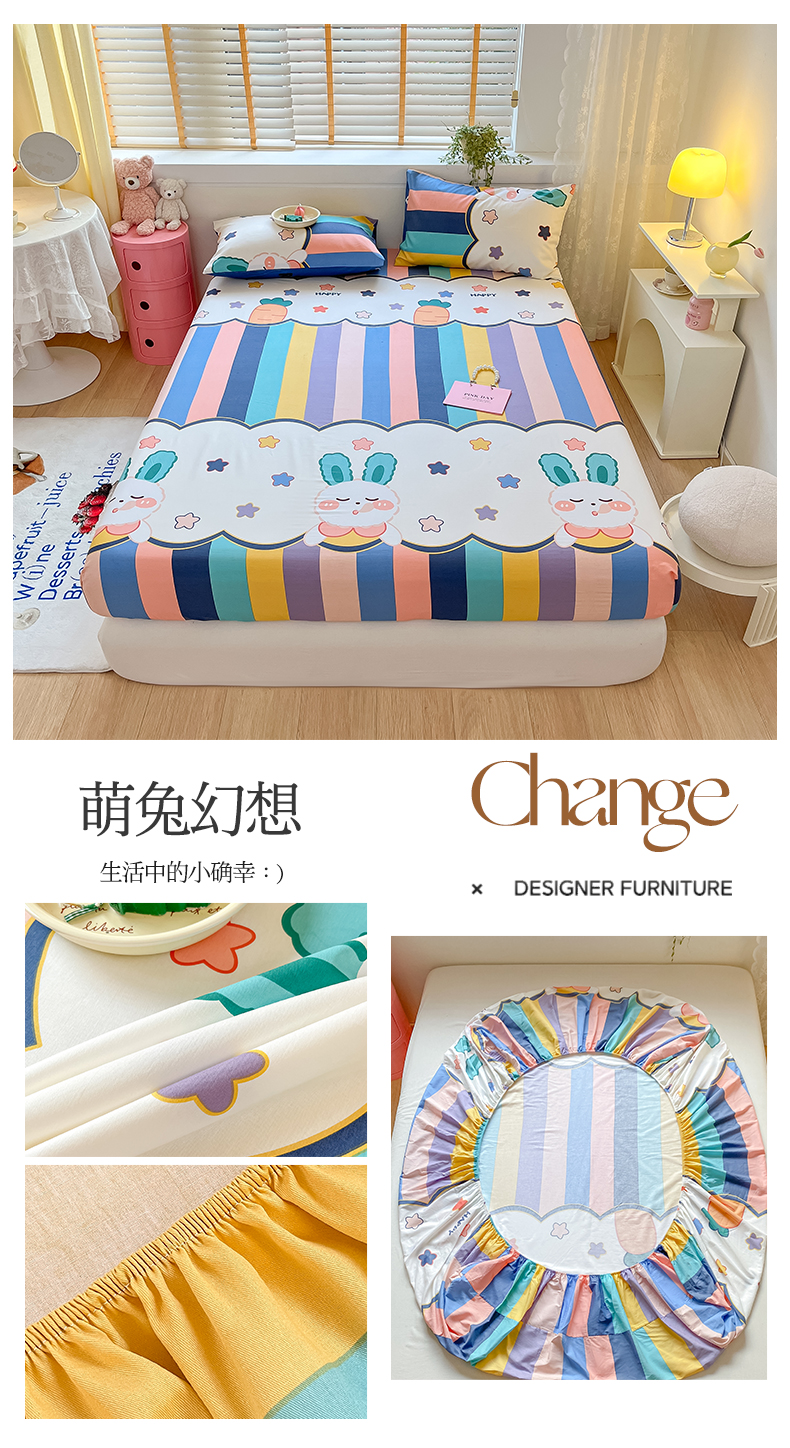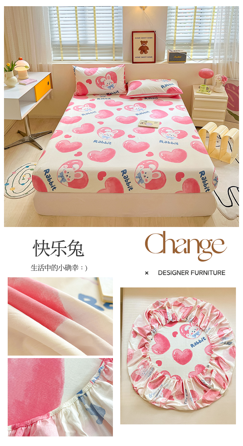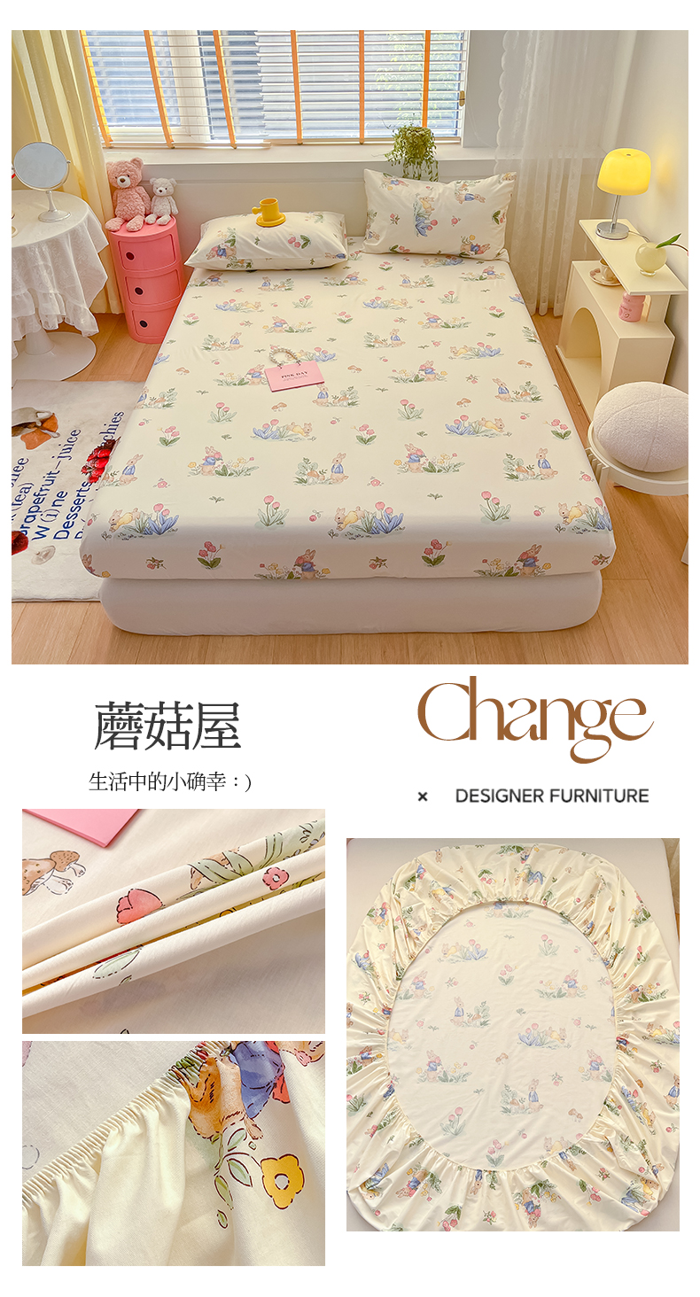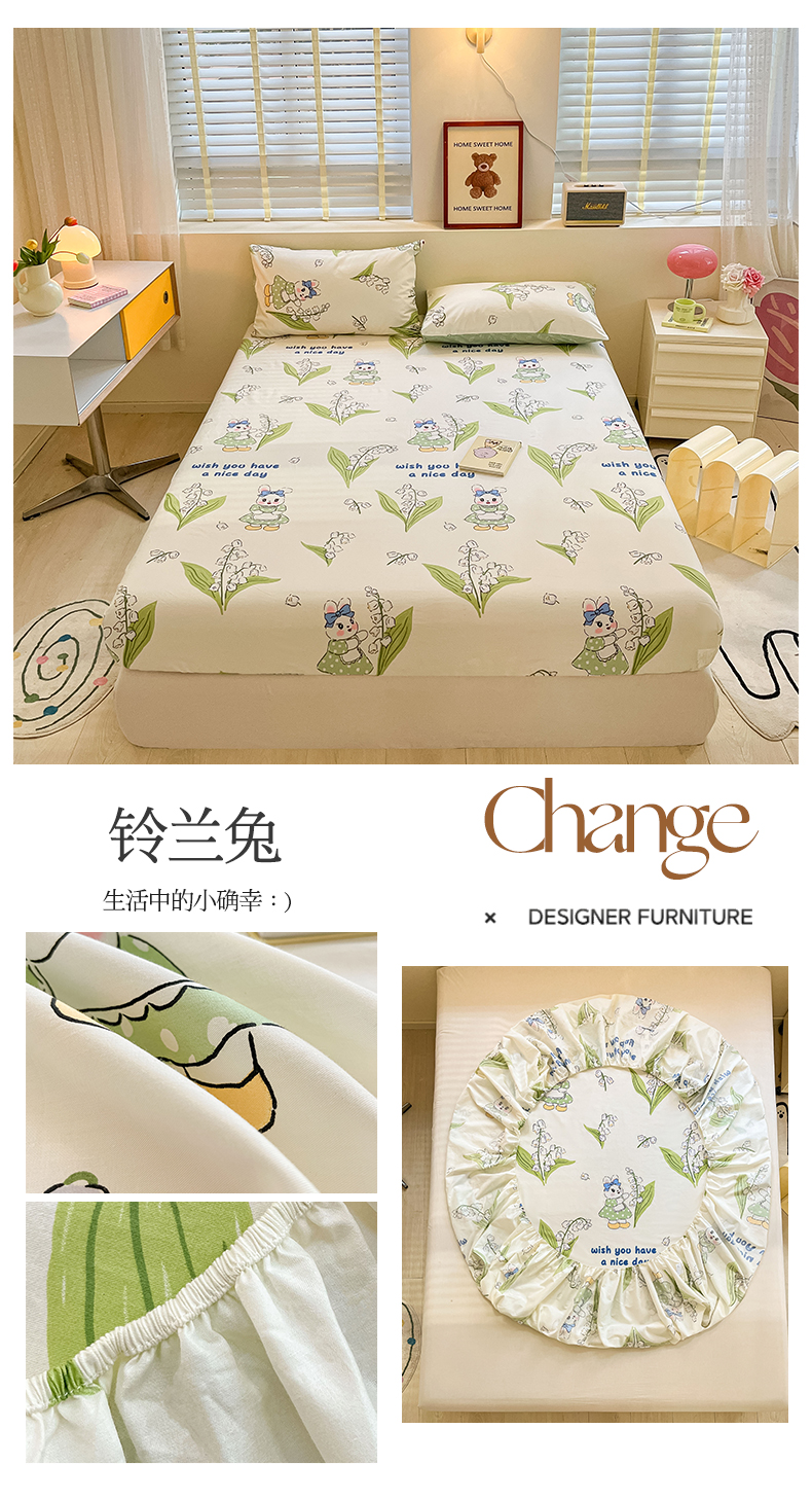 (总)蓝邻家纺 2024新款小清新印花全棉四件套学生宿舍三件套,茶园兔,风翩,机灵兔熊,可妮露,藤蔓兔,筱薇