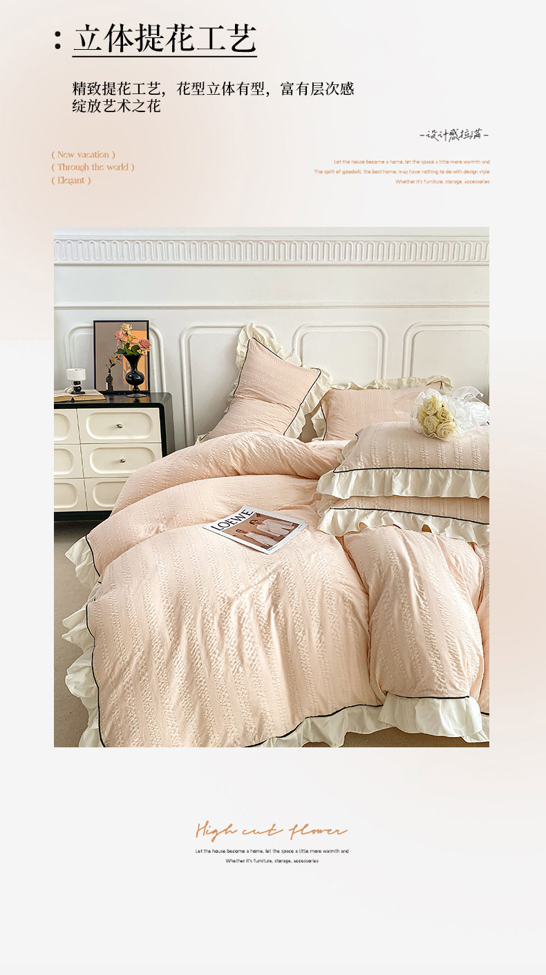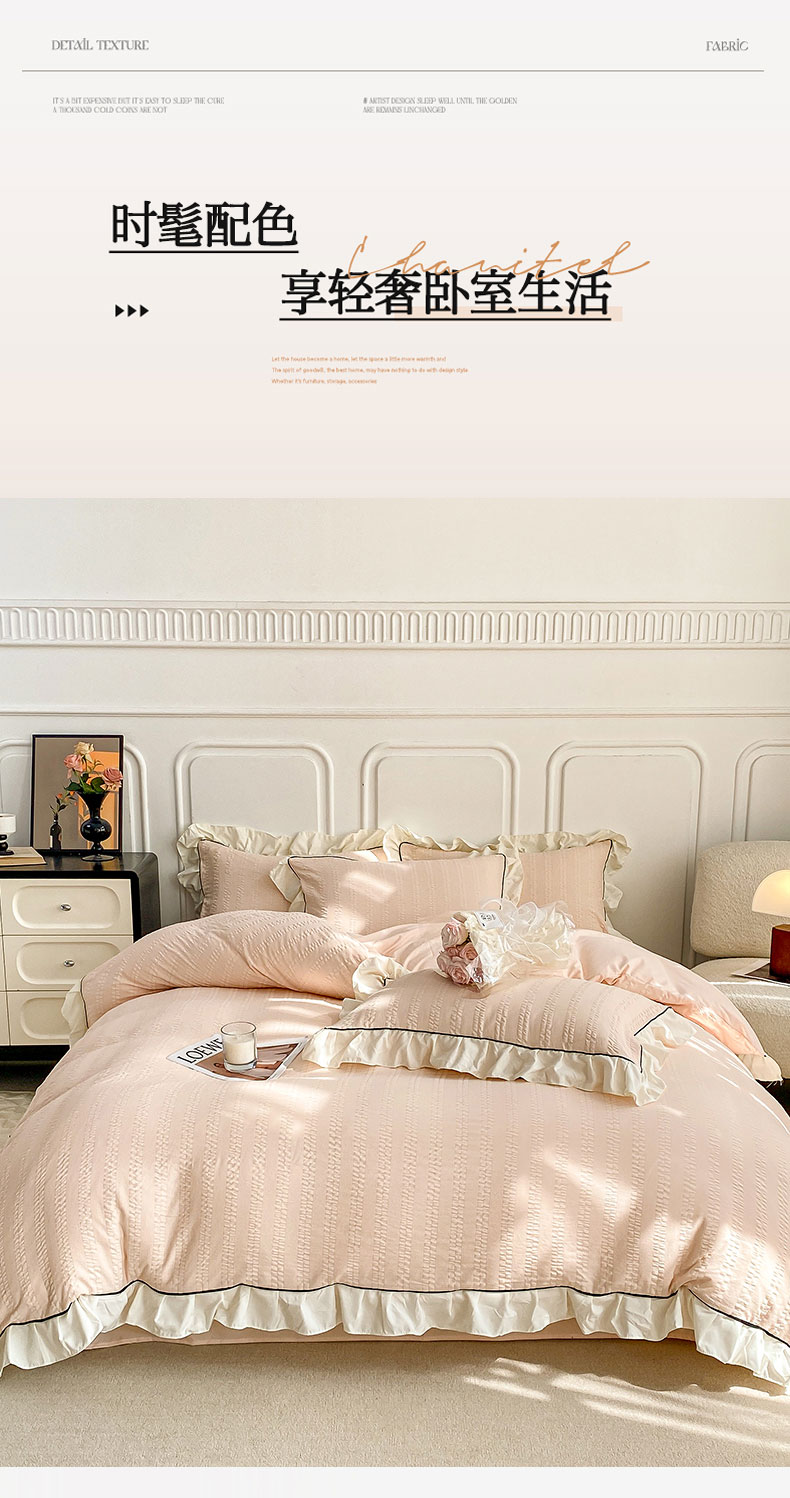 商品名称:其奥 2025新款小提花韩版公主风小清新轻奢四件套三件套 玉色