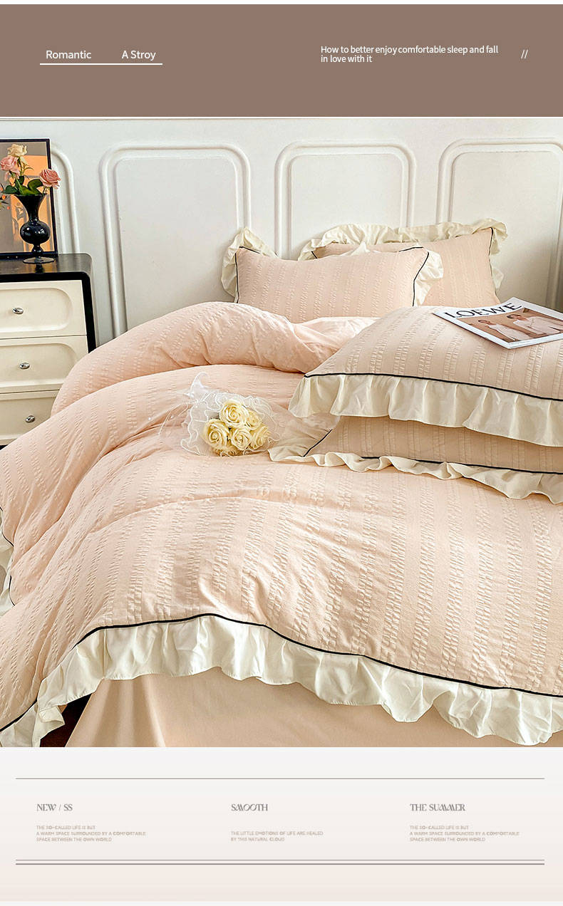 (总)其奥 2025新款小提花韩版公主风小清新轻奢水洗棉四件套三件套,粉豆沙,浪漫紫,美拉德棕,香草绿,优雅灰,玉色,蓝色