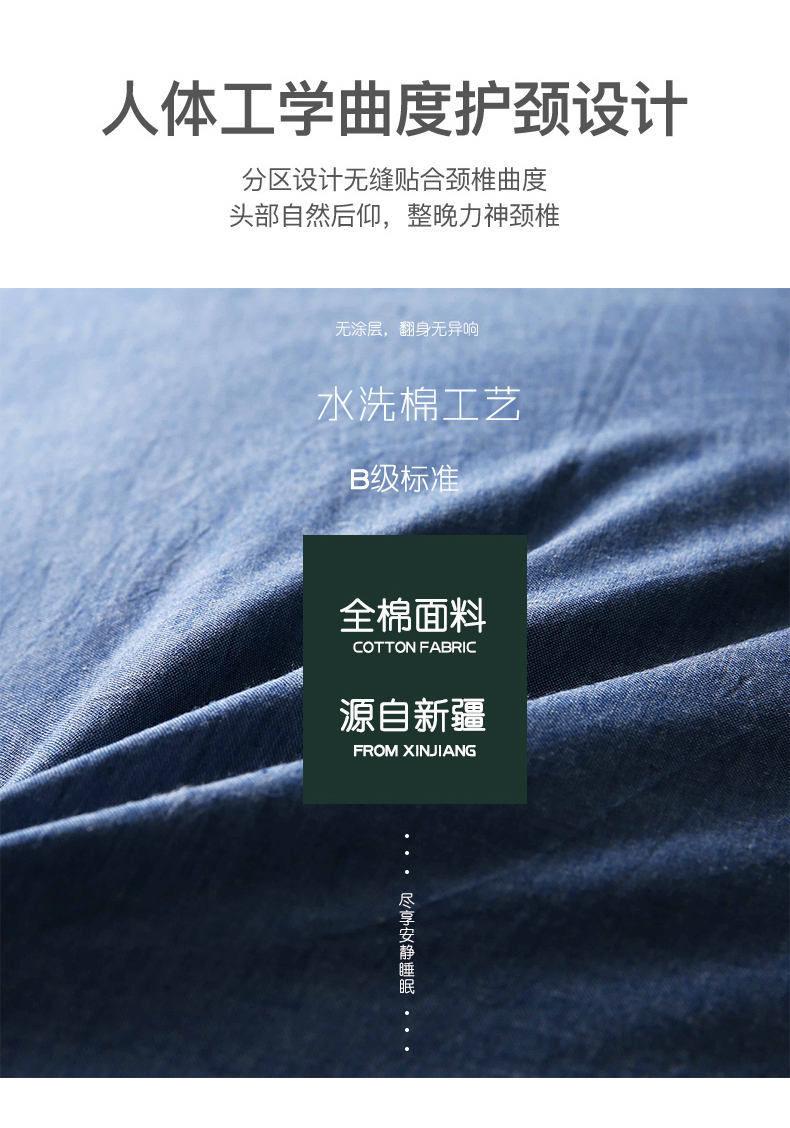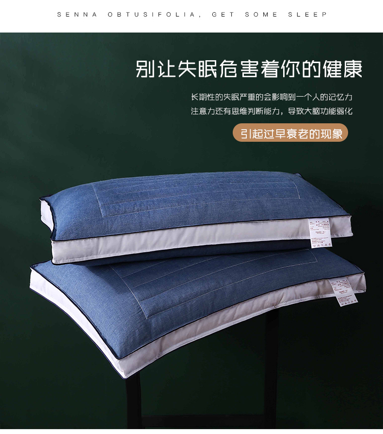 商品名称:沃兰国际 新款全棉水洗棉荞麦枕芯花草护颈枕头单人绗缝定型枕 琥珀蓝