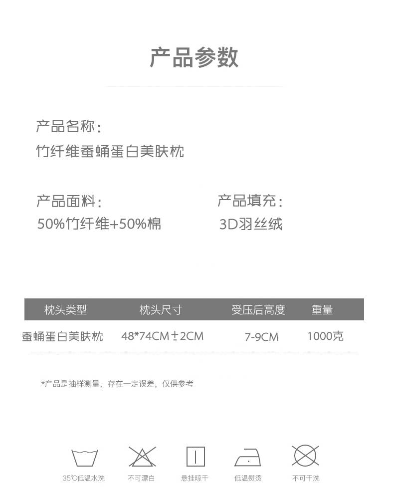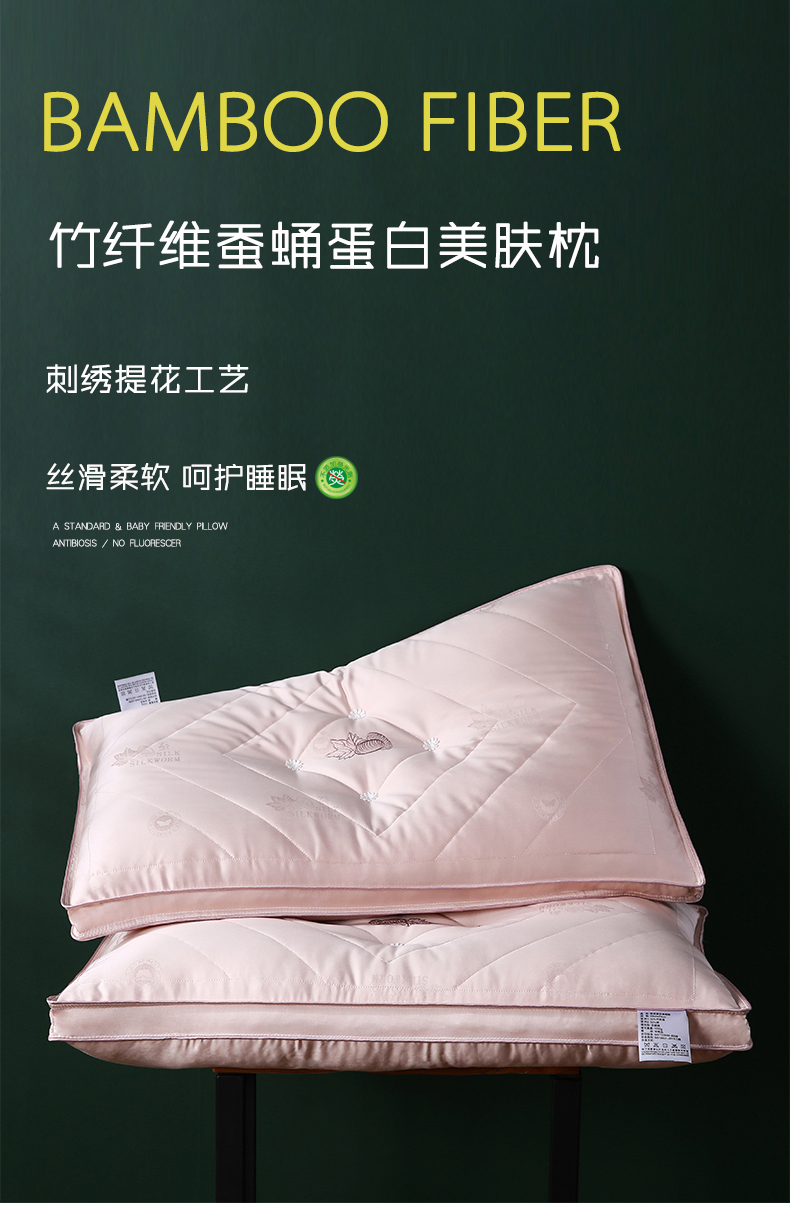 商品名称:(总)沃兰国际 竹纤维蚕蛹蛋白羽丝绒枕头成人护颈单人枕芯