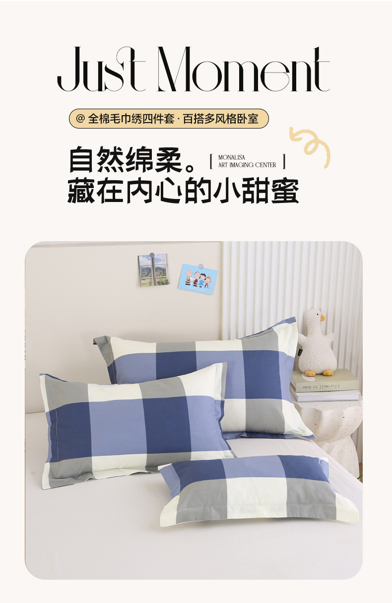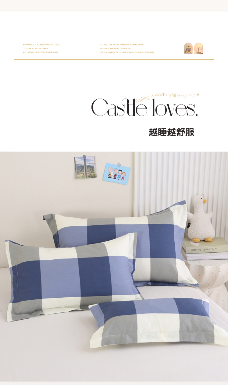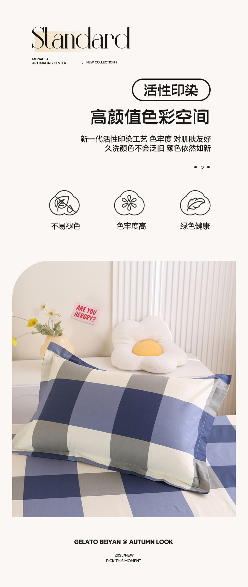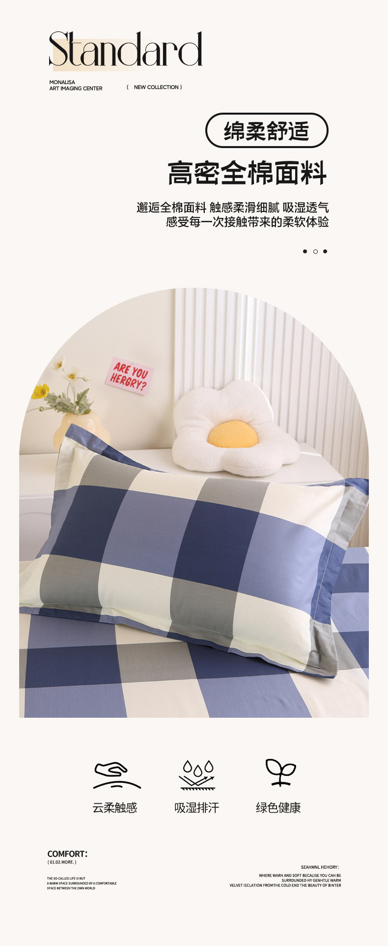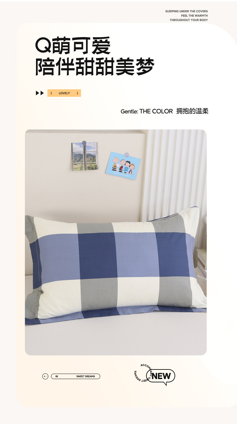 商品名称:凯森家纺 2024新款13372全棉枕套单人枕头套枕芯套儿童枕套 格调-蓝