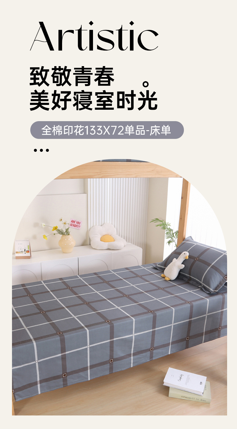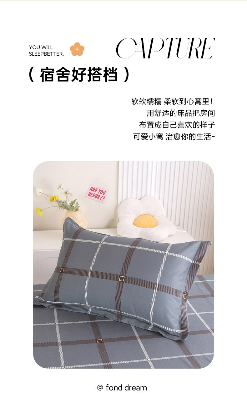 商品名称:凯森家纺 2024新款全棉13372学生床单三件套直播代发 俄洛伊-灰