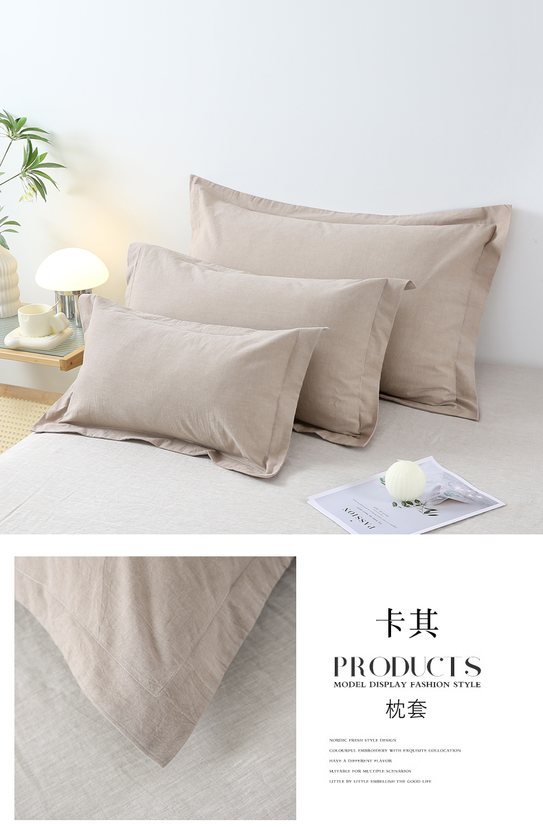 商品名称:凌云家纺 2025新款A类全棉水洗棉单枕套反面开口信封式枕套 卡其