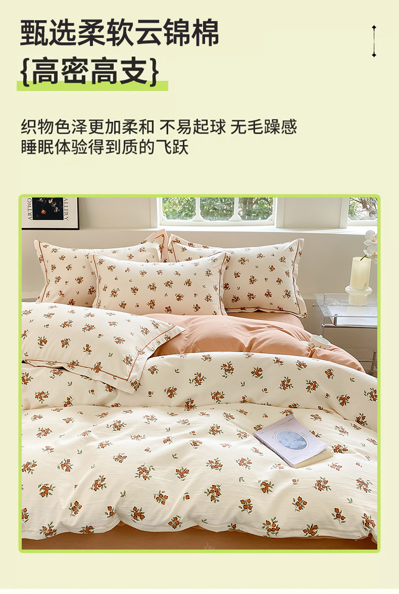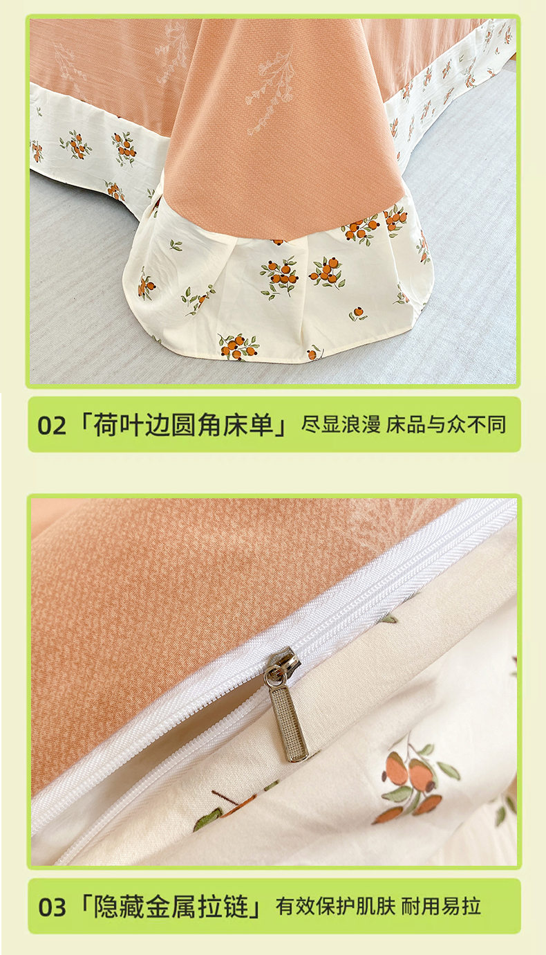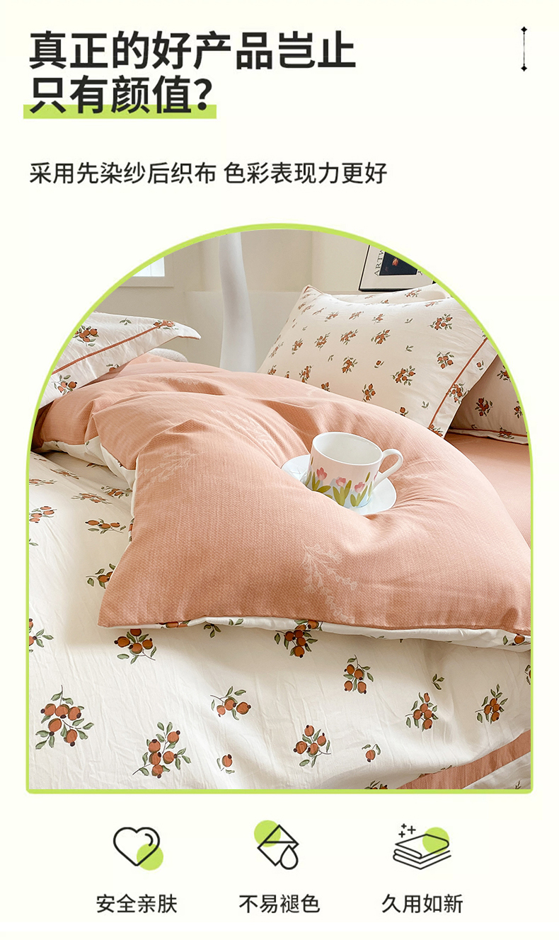 当前位置: 91家纺网 > 商品网购 > 床品套件 > 四件套 > 全棉普通四件套 > 家贝爱 2024春日新款A类精选高支高密水洗云锦棉四件套 硕果累累