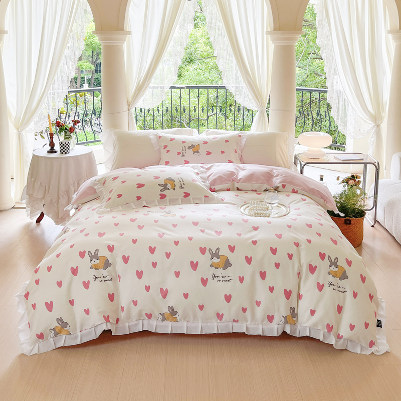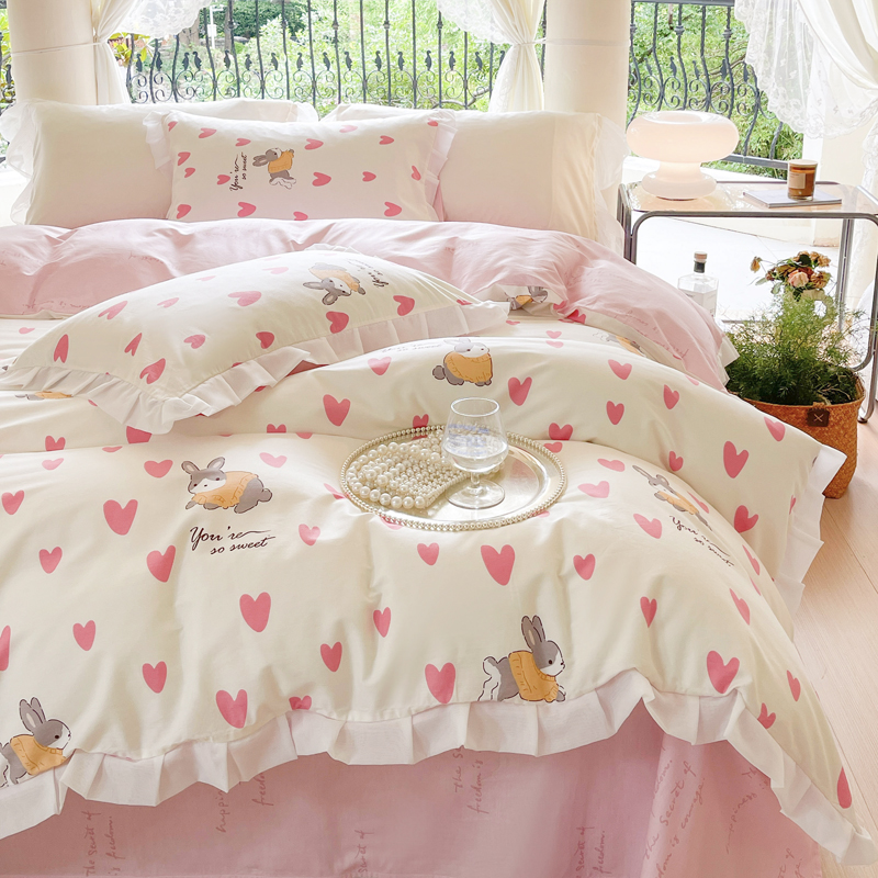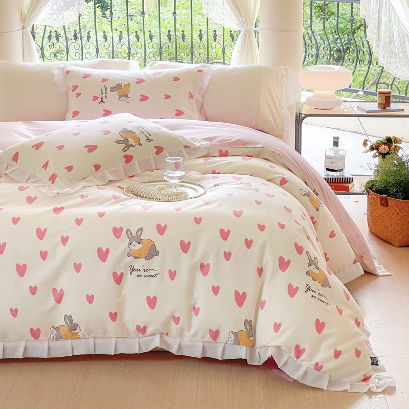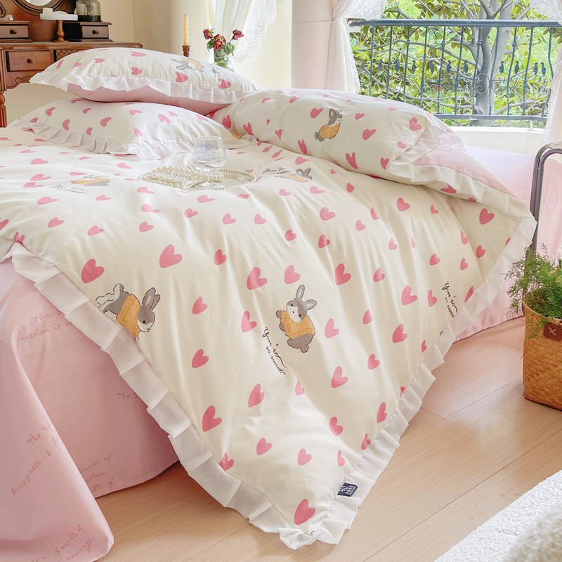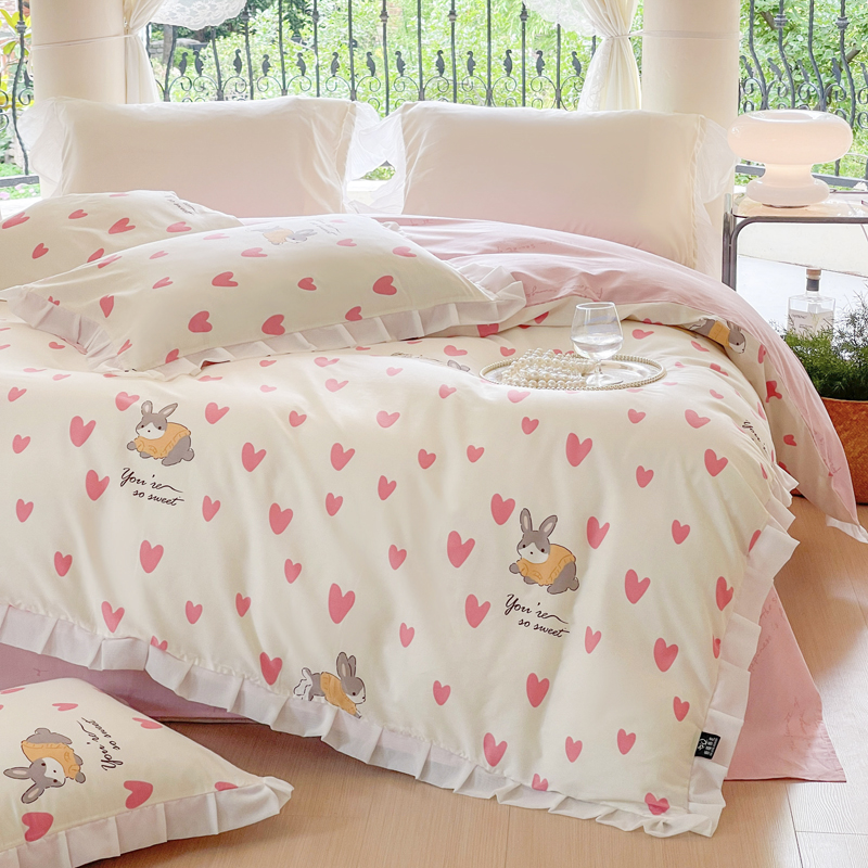 乐童家纺 2024新款13372全棉雪纺花边四件套直播热款 波比兔