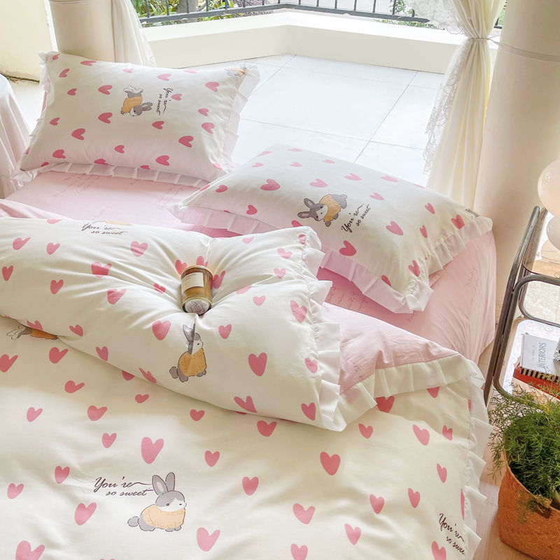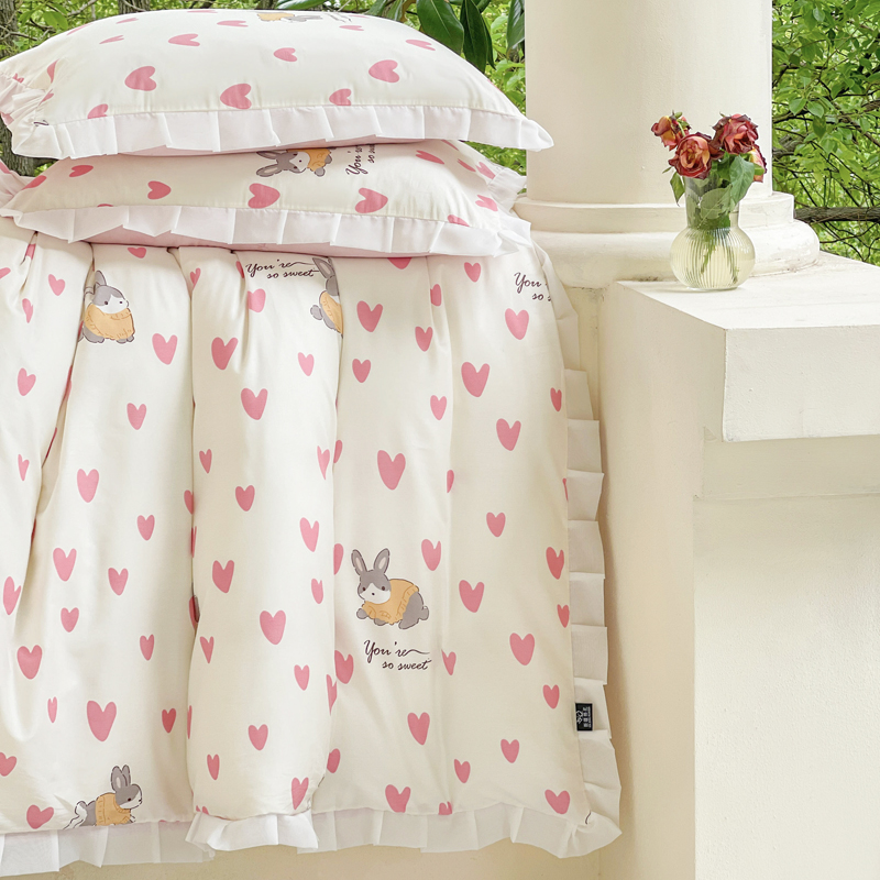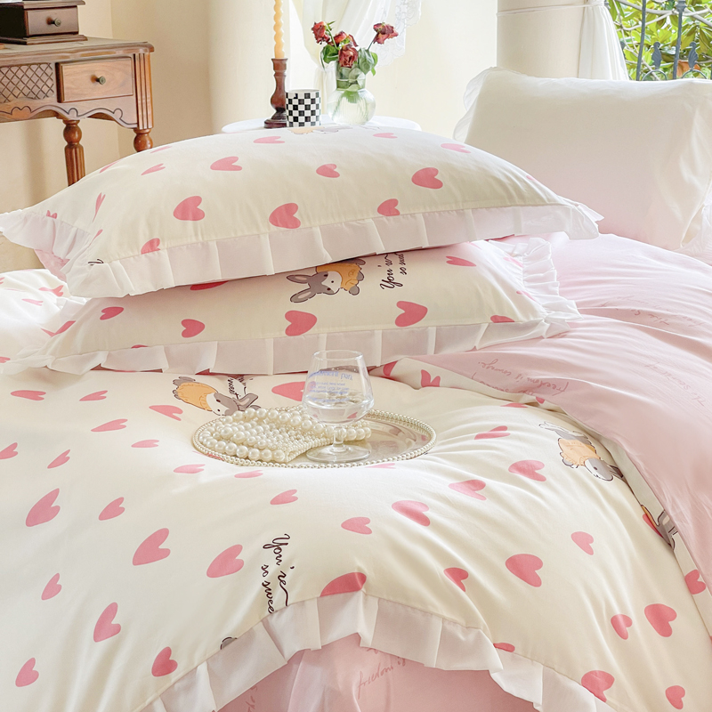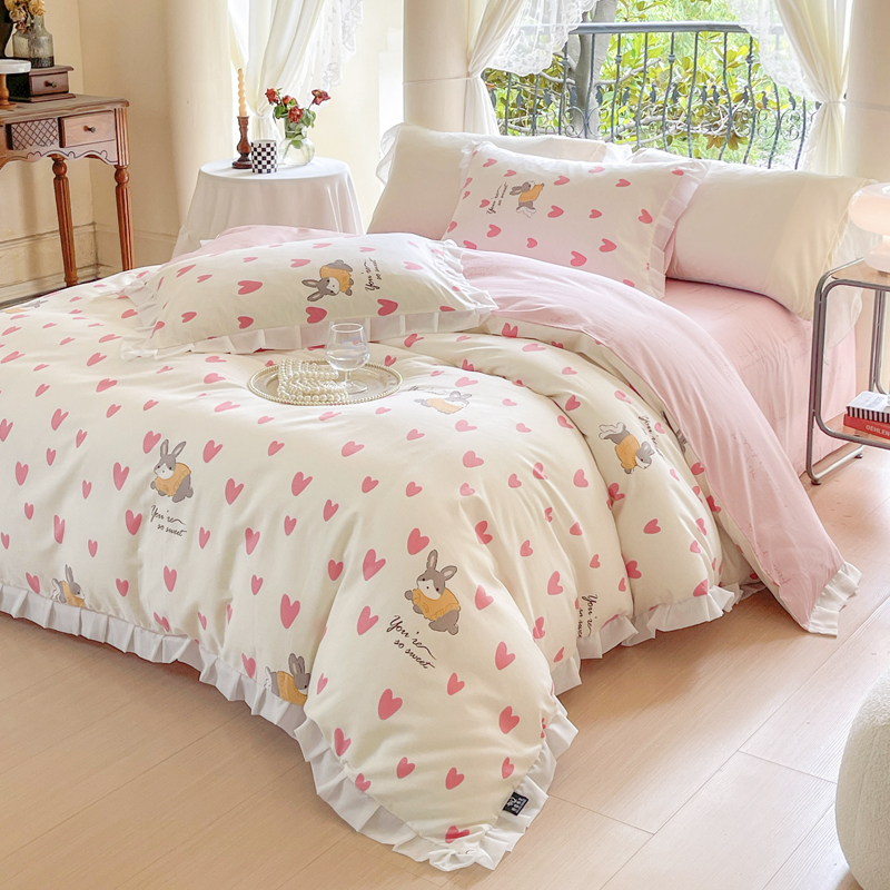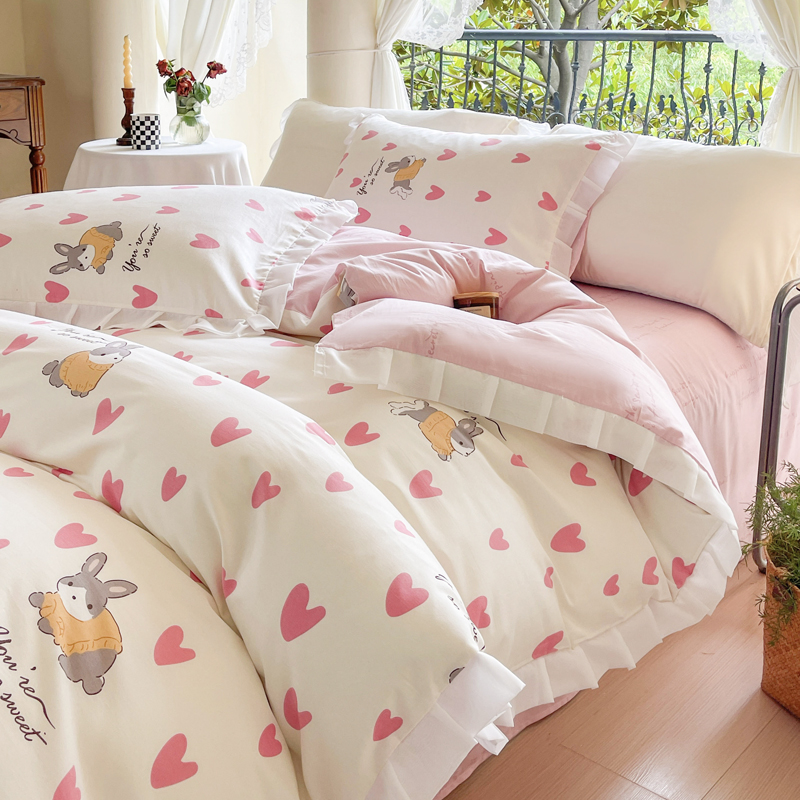 乐童家纺 2024新款13372全棉雪纺花边四件套直播热款 波比兔
