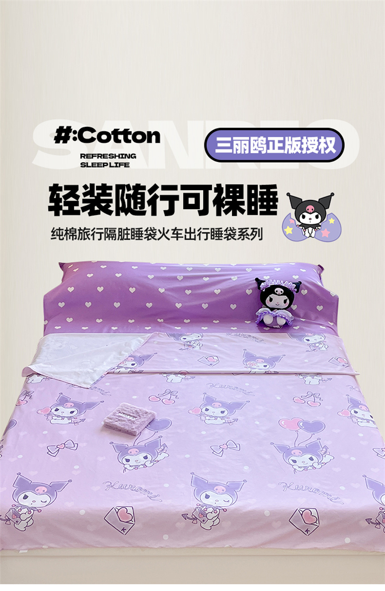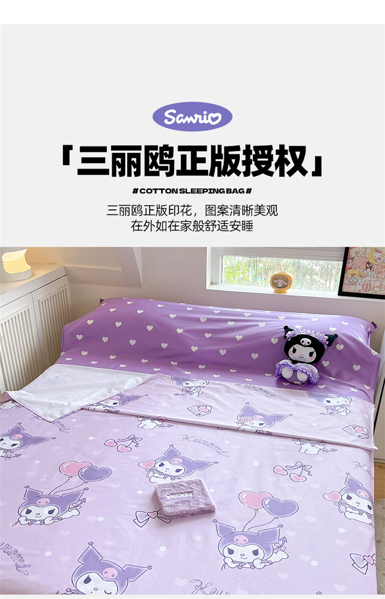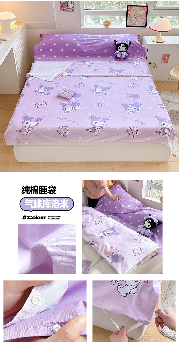 金爱家 2024新款三丽鸥正版授权纯棉旅行隔脏睡袋火车出行睡袋系列(送同款收纳袋) 纯棉睡袋-气球库洛米