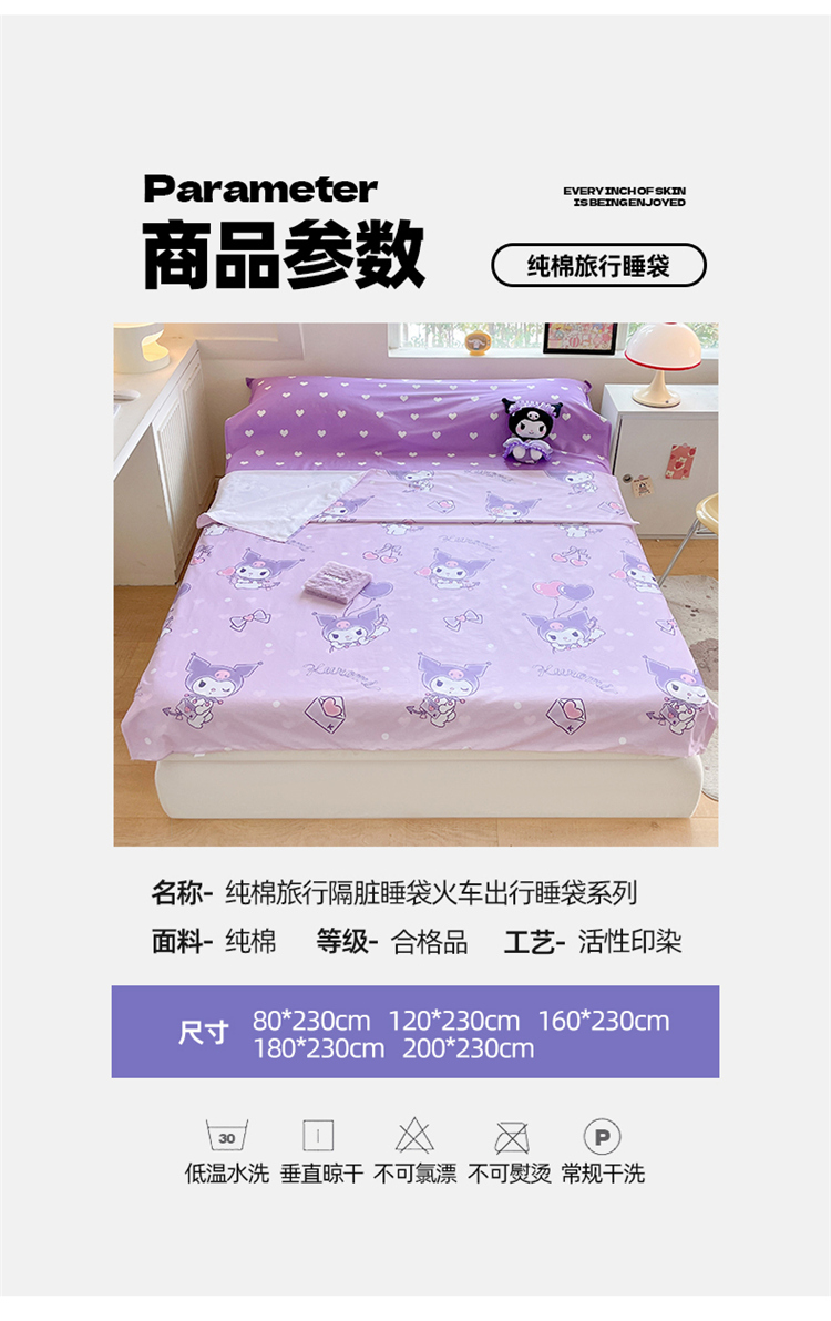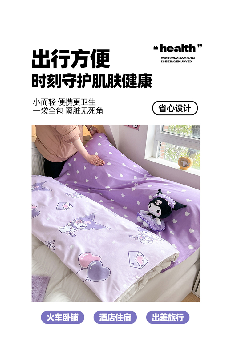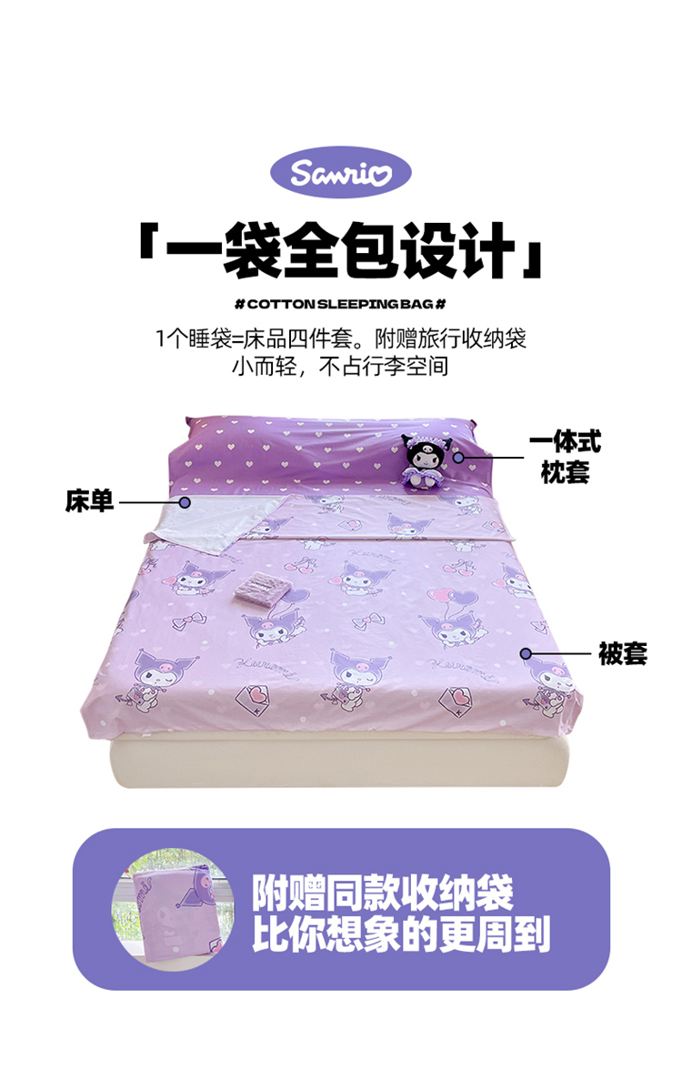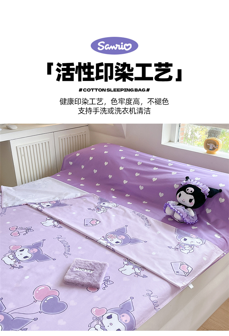 金爱家 2024新款三丽鸥正版授权纯棉旅行隔脏睡袋火车出行睡袋系列(送同款收纳袋) 纯棉睡袋-气球库洛米