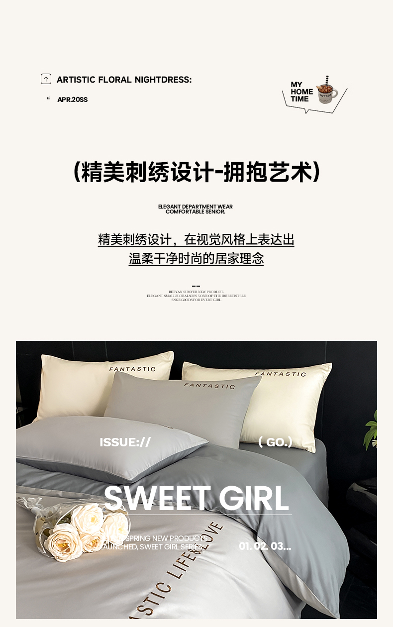 当前位置: 91家纺网 > 商品网购 > 床品套件 > 四件套 > 全棉活性四件套 > 澳梵家居 2024新款60s全棉刺绣四件套--罗曼克系列 罗曼克-椰子灰