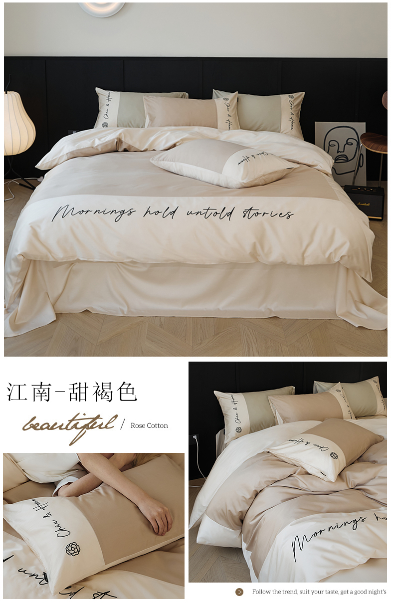 当前位置: 91家纺网 > 商品网购 > 床品套件 > 四件套 > 全棉普通四件套 > 2024春夏新款天丝棉四件套--江南系列(常规图) 江南-甜褐色