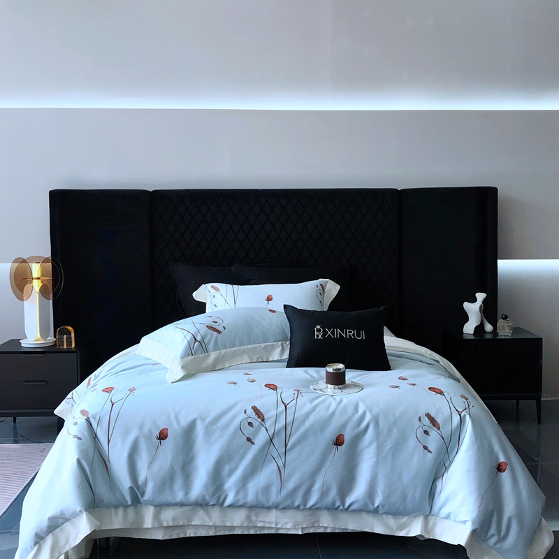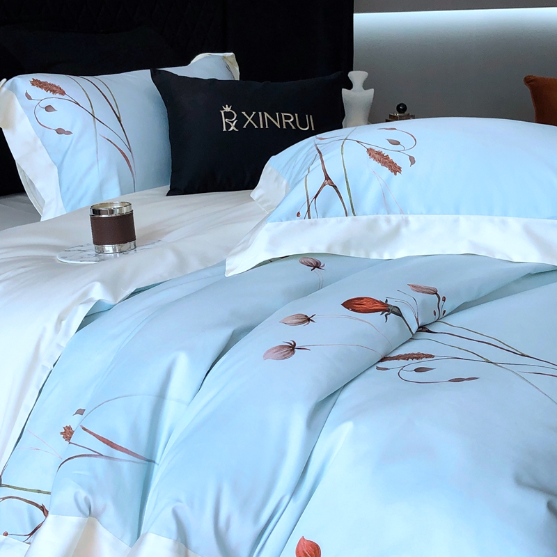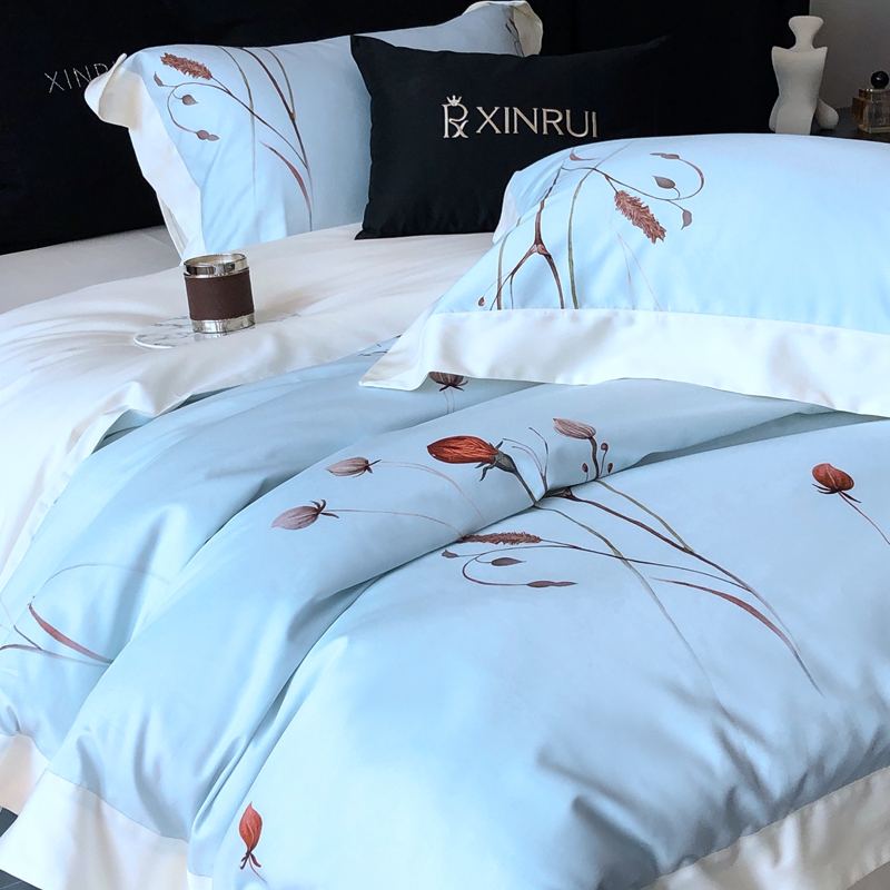 商品名称:馨蕊2024新款100S高奢简约活性数码印花系列四件套-棉玫瑰佳人 玫瑰佳人-北卡蓝