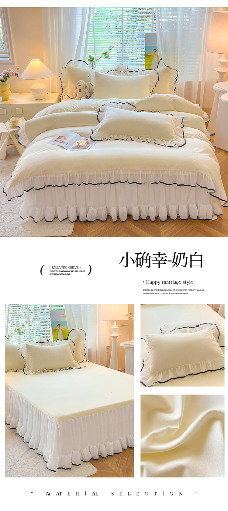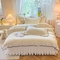 唐人居 2025新款水洗棉麻亲肤蕾丝花边四件套 小确幸-奶白
