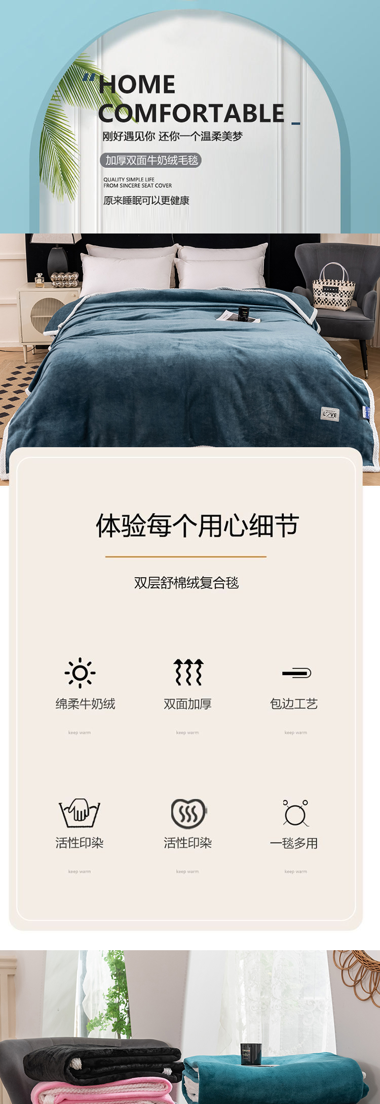 商品名称:凤凰林毛毯 2024新款加厚亲肤牛奶绒毛毯 漓江蓝