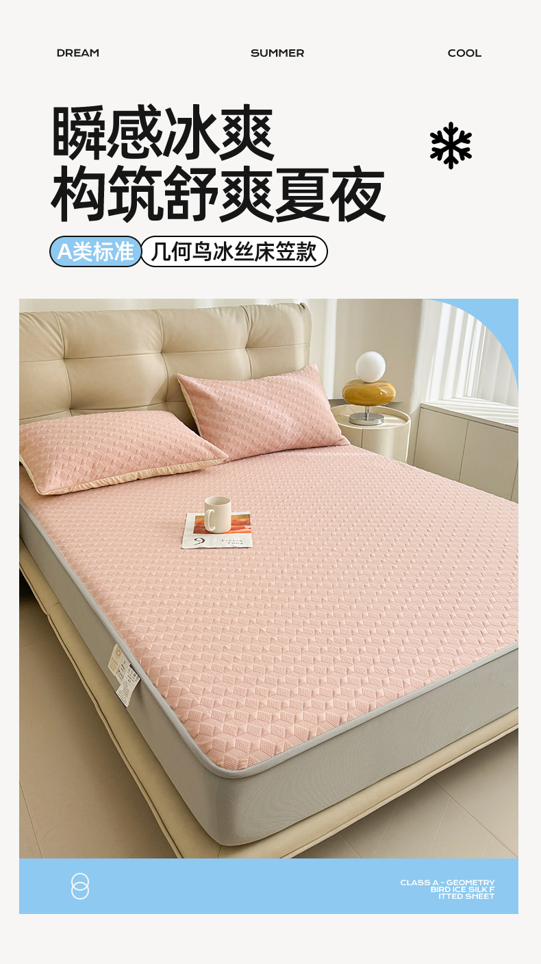 恒爱家纺 新款A类亲肤几何鸟冰丝床笠 几何-玉