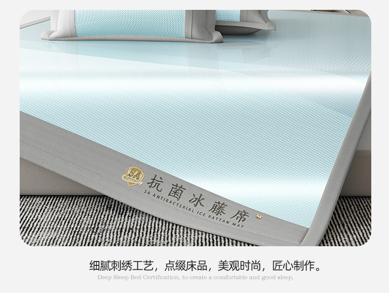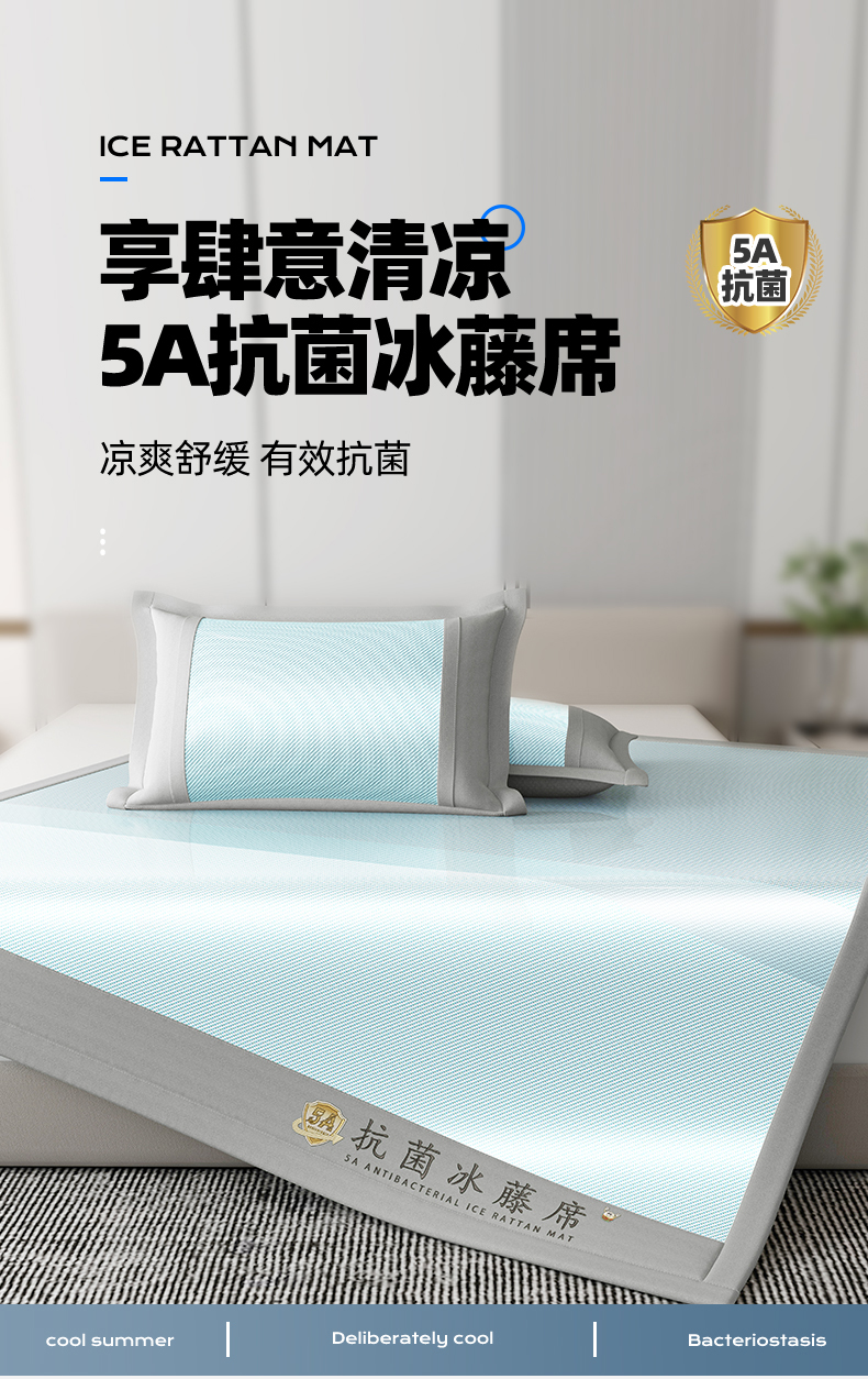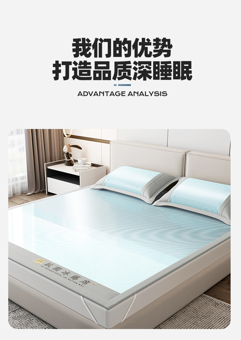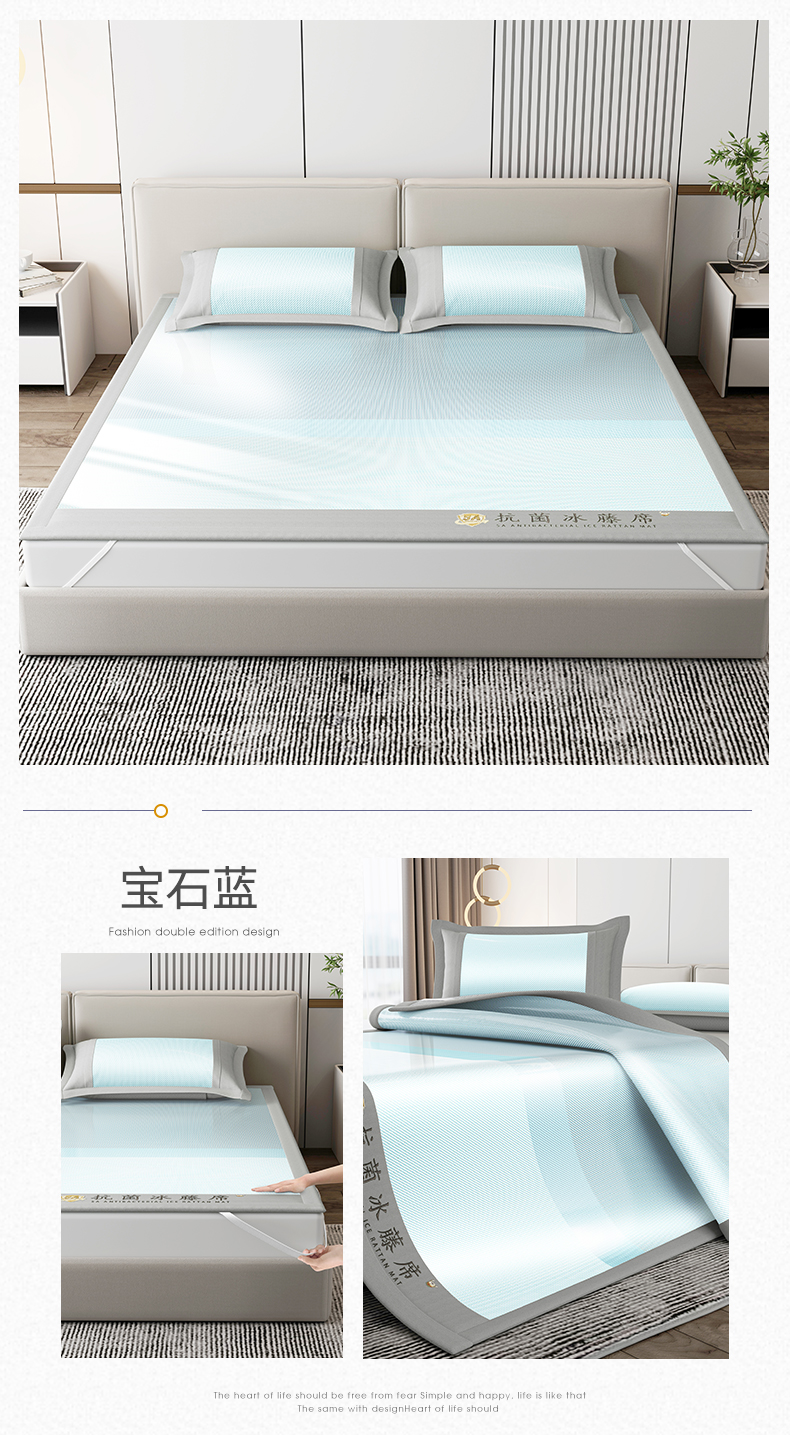 商品名称:鑫姿席业 2025新款渐变款亲肤舒适5A抗菌冰丝席 宝石蓝(床笠款)