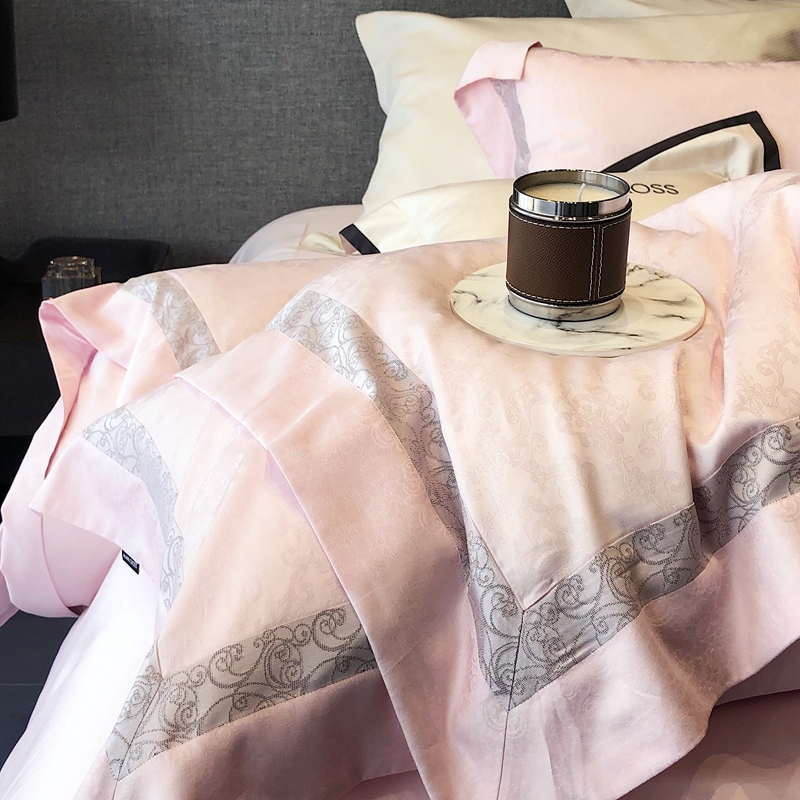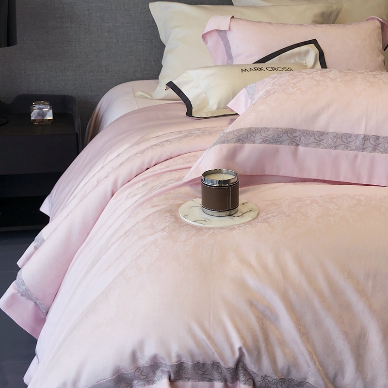 佳汐蓝家纺 2024新款高奢雅韵奶丝提花系列四件套 情迷加勒比-甜粉色