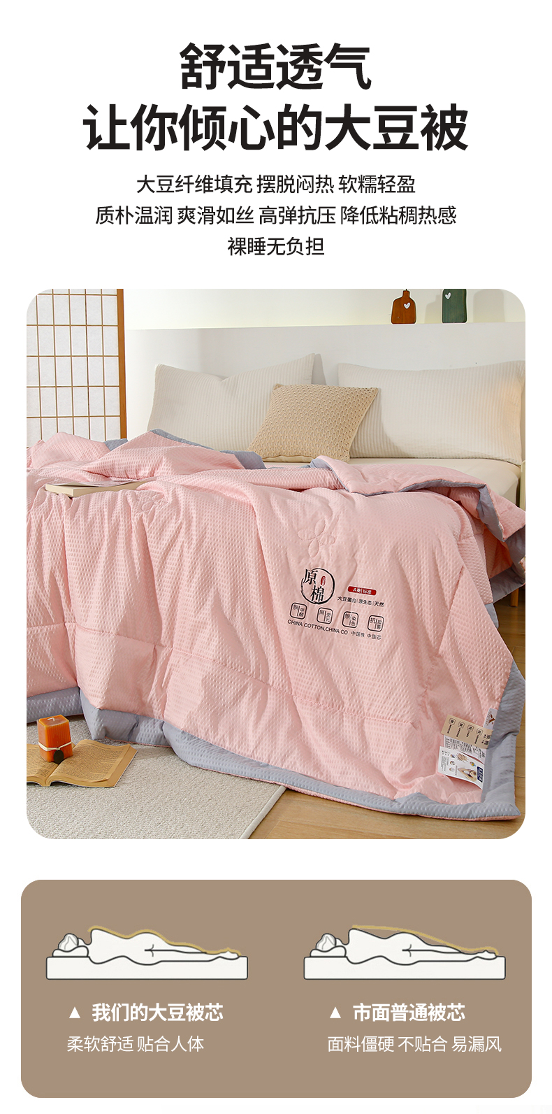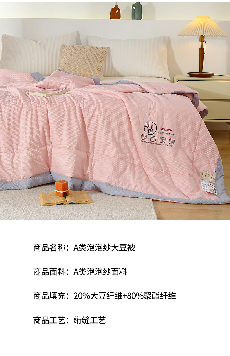 商品名称:江山被业 2025新款泡泡纱大豆夏被 粉色