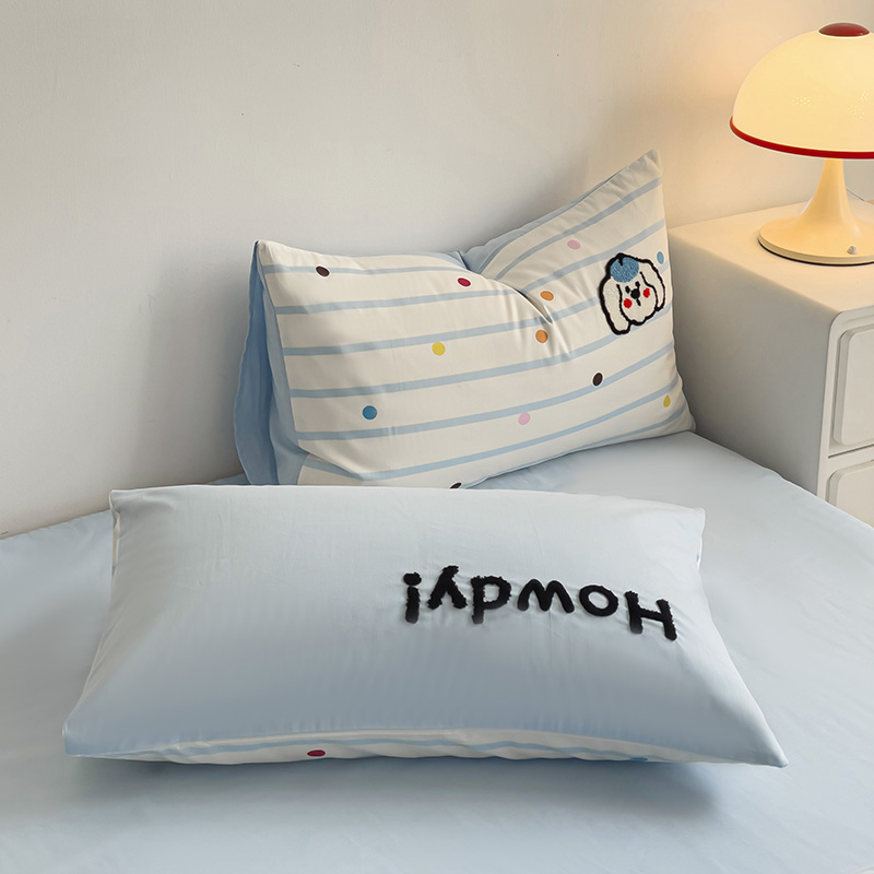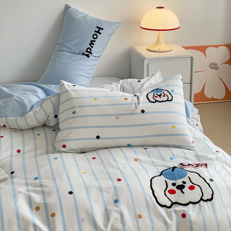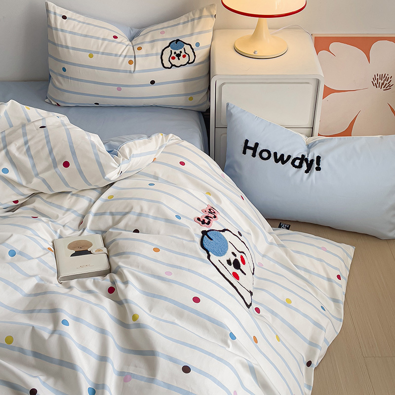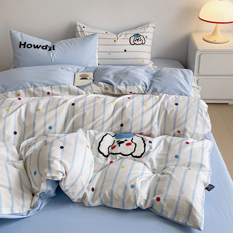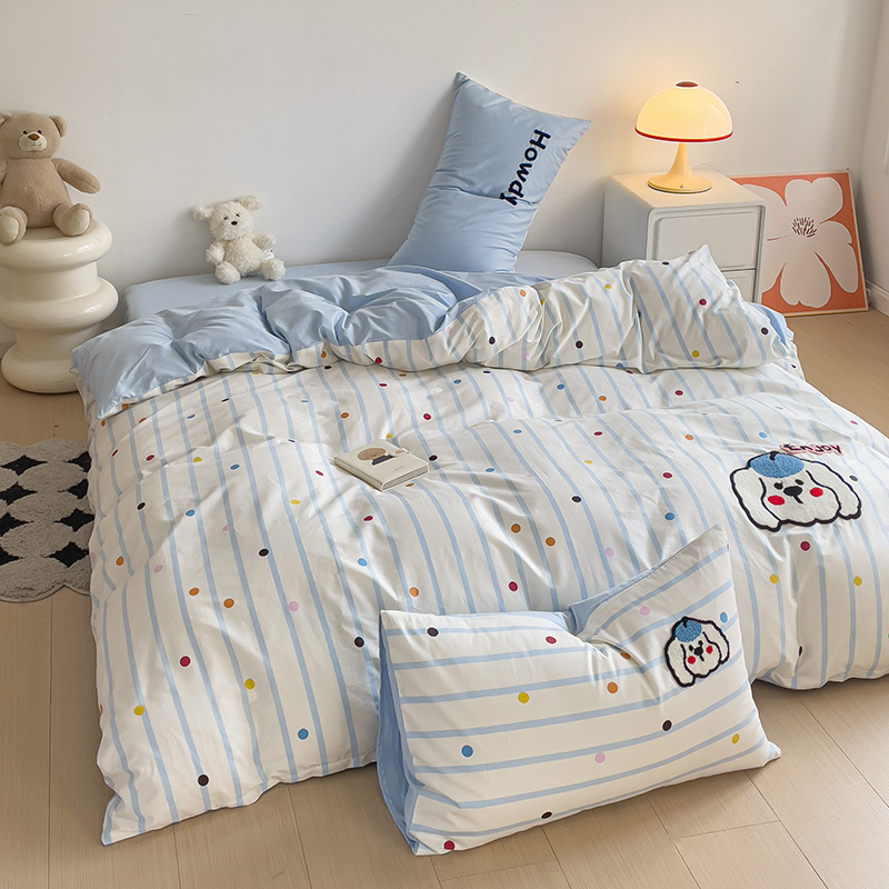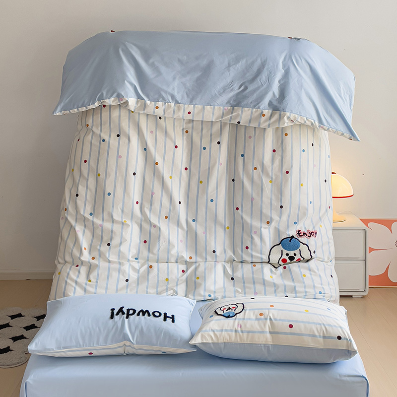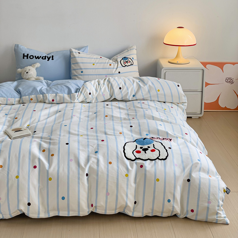 乐童家纺 2024爆款全棉1332呆萌小刺绣系列四件套 蓝帽狗