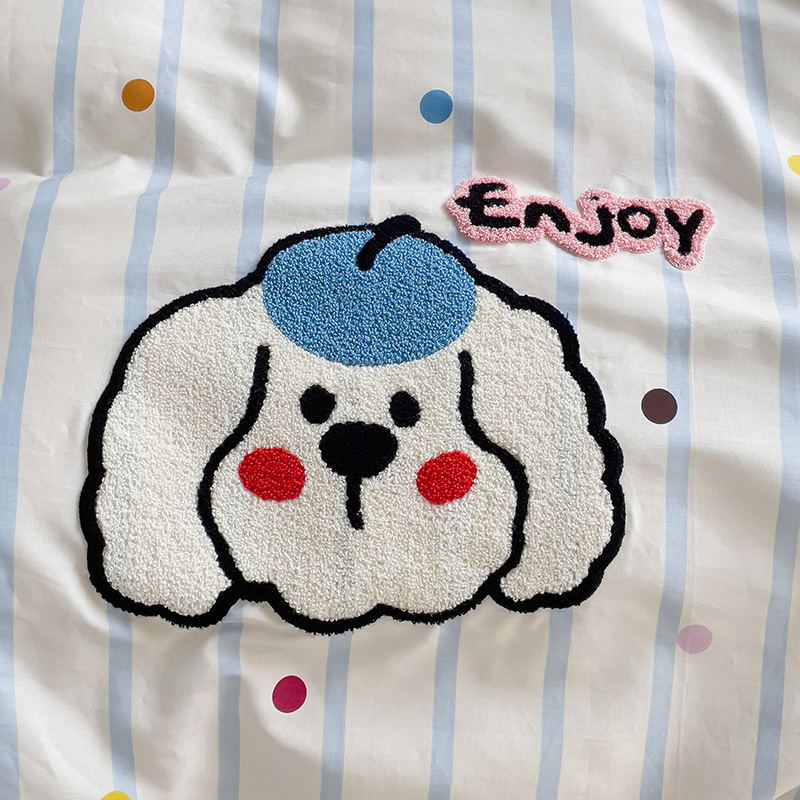商品名称:乐童家纺 2024爆款全棉1332呆萌小刺绣系列四件套 蓝帽狗