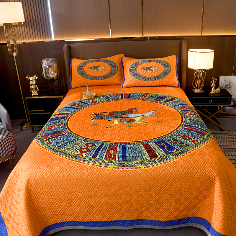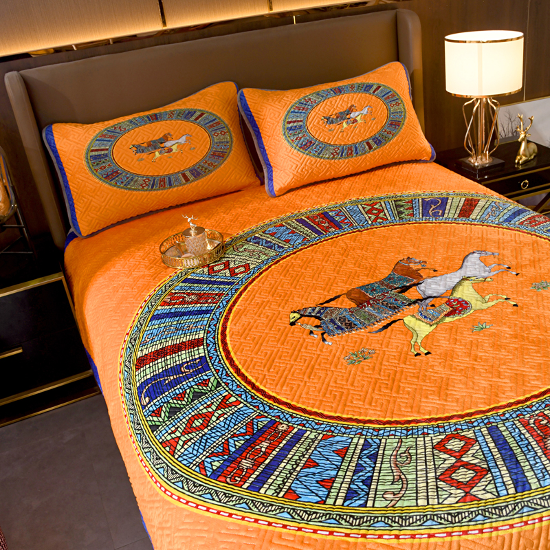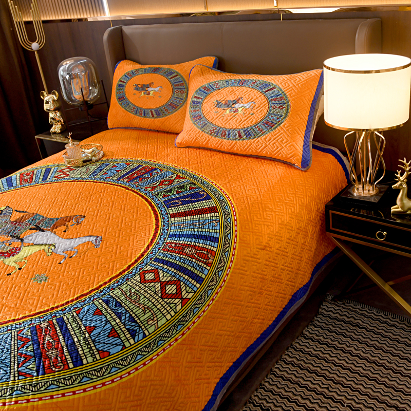 (总)爵仕家纺 2025新款凉感真丝床盖三件套,豹,大天使,宫廷马,金典,骏马白,郎世宁马,女皇,赛马场,十骏马白,驯马人,指南者