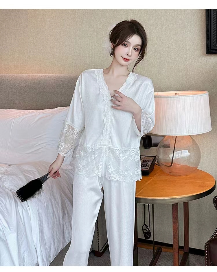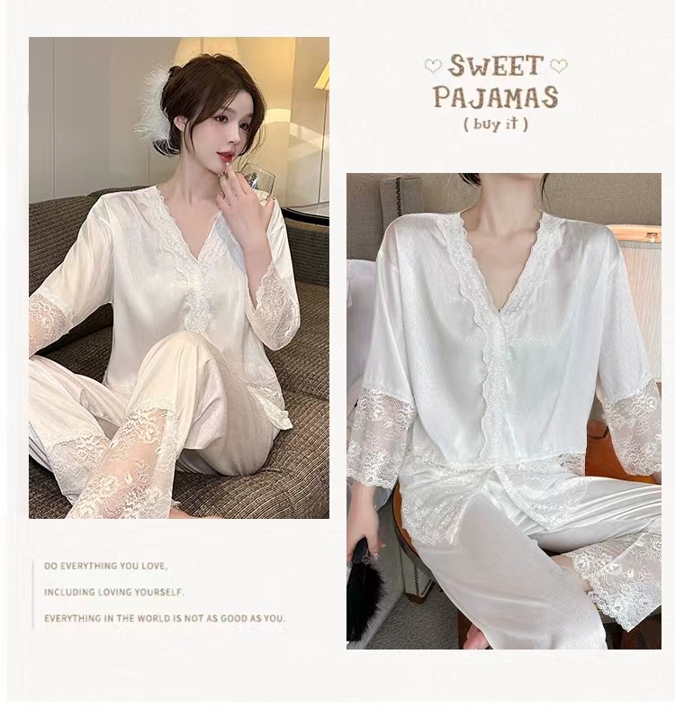 (总)洛兰沙家居馆 2024新款秋冬季清新款睡衣女三层夹棉珊瑚绒加厚保暖两件套女士可外穿加绒家居服,白色