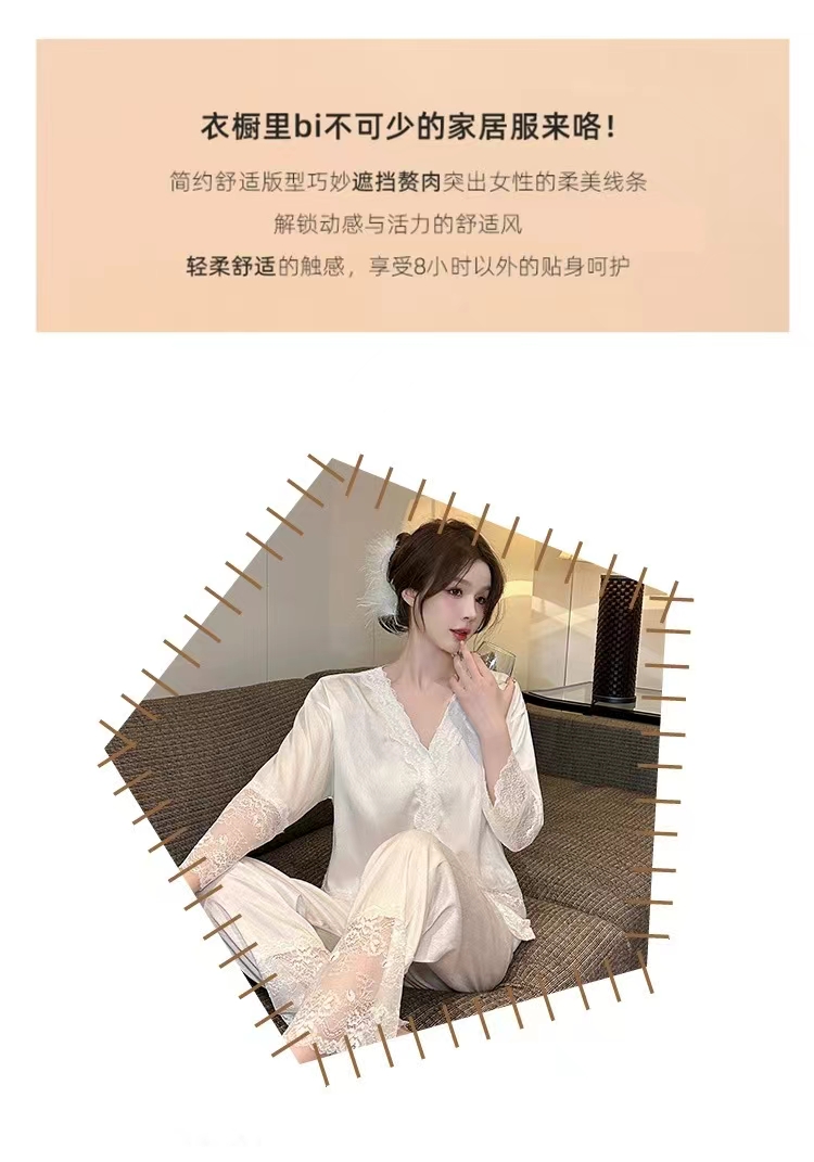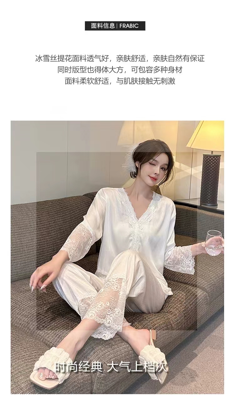 洛兰沙家居馆【只代发】【只代发】 2024新款冰丝蕾丝睡裙 23101-黑色