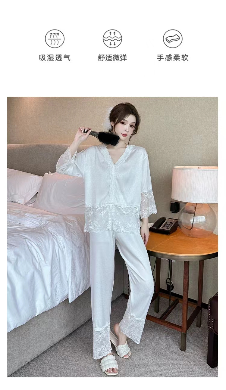 商品名称:洛兰沙家居馆【只代发】【只代发】 2024新款冰丝蕾丝睡裙 23101-黑色