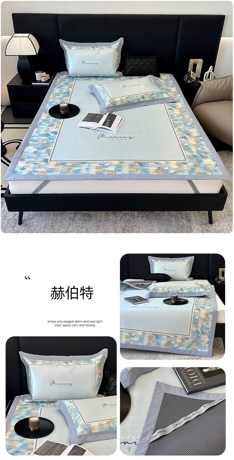 商品名称:JUICY 橘滋家纺 2024新款A类数码印花抑菌冰丝床席款床笠款软凉席套件 赫伯特(平席款)