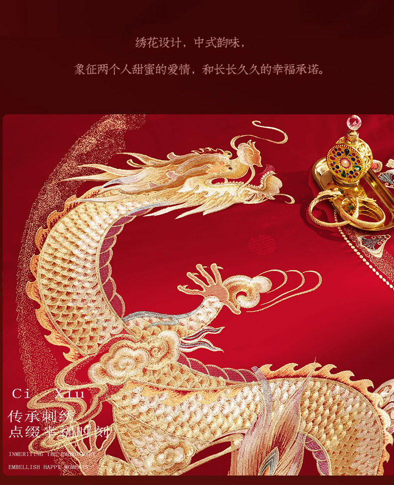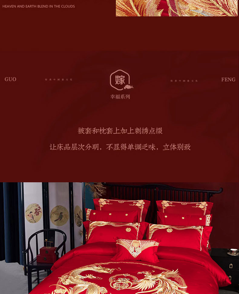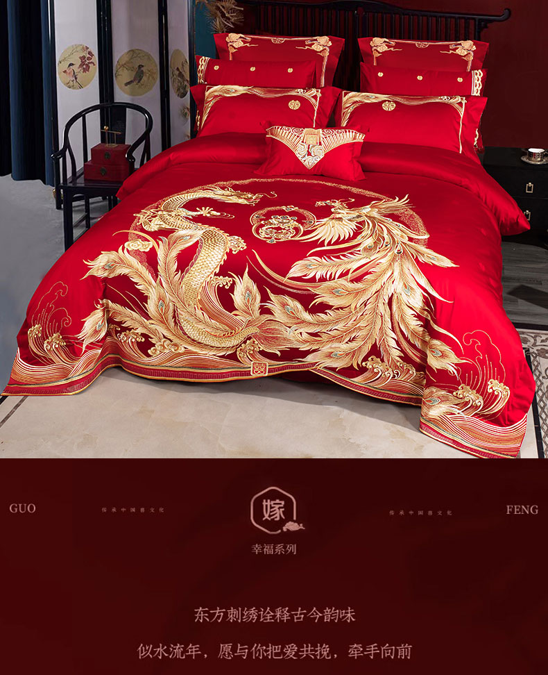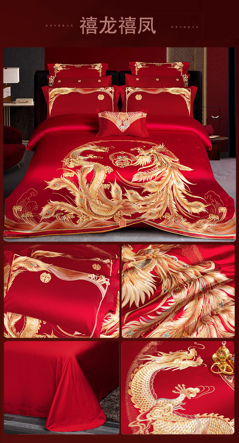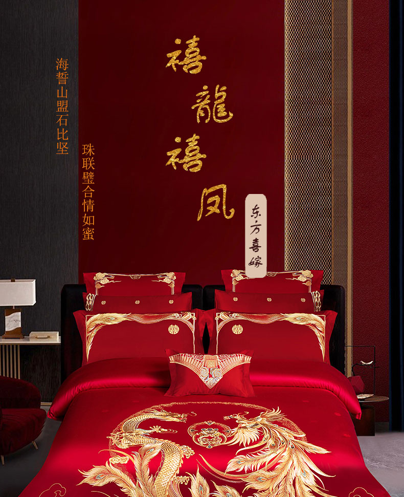 当前位置: 91家纺网 > 商品网购 > 床品套件 > 四件套 > 婚庆四件套 > 蒂爵 全棉纯棉提花顶奢重工绣花工艺款婚庆四件套多件套 禧龙禧凤