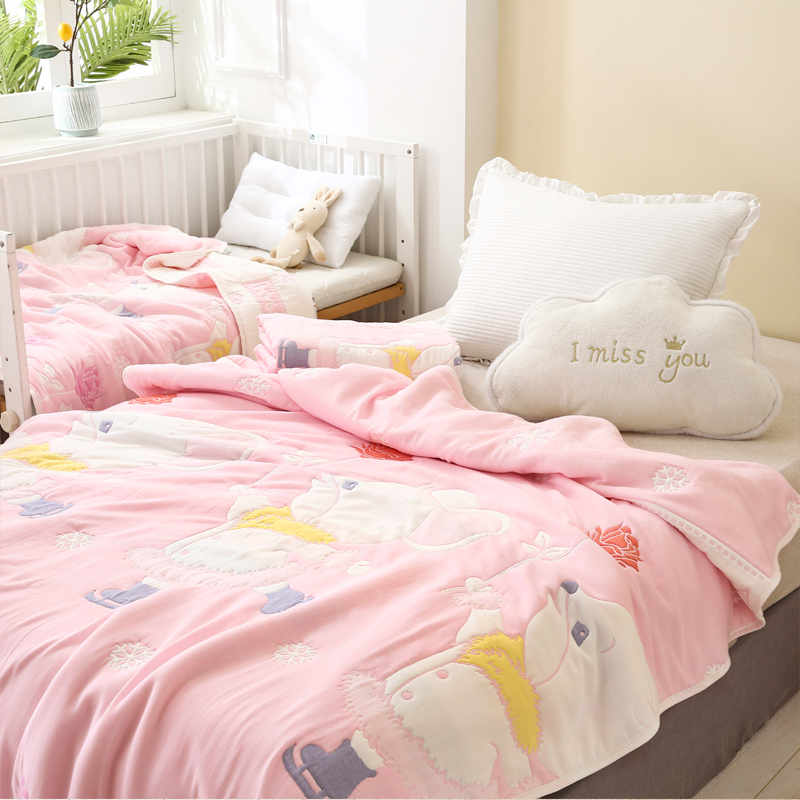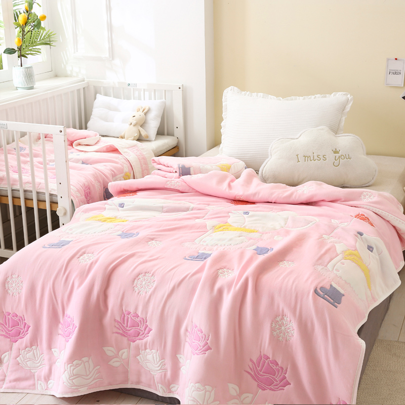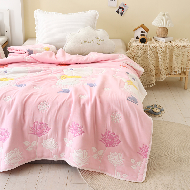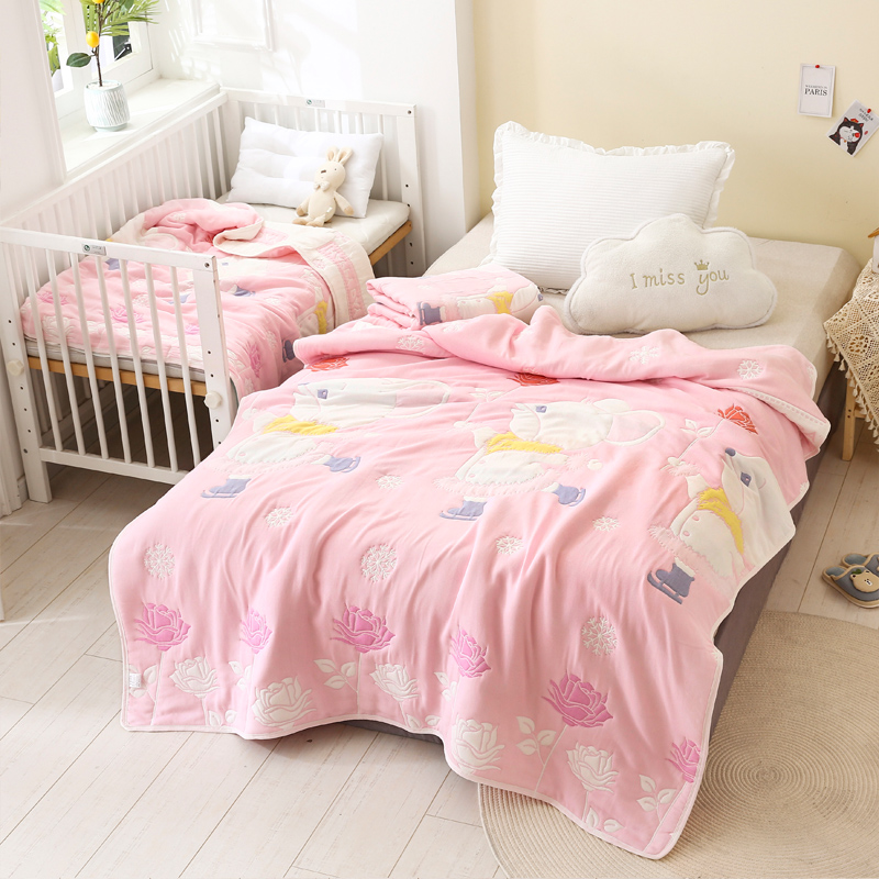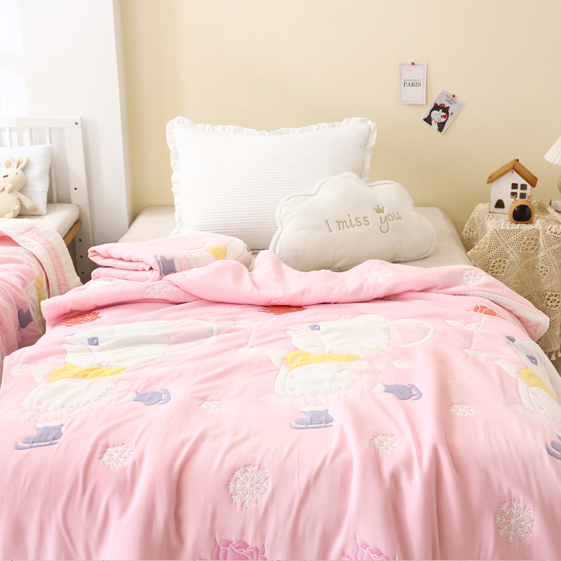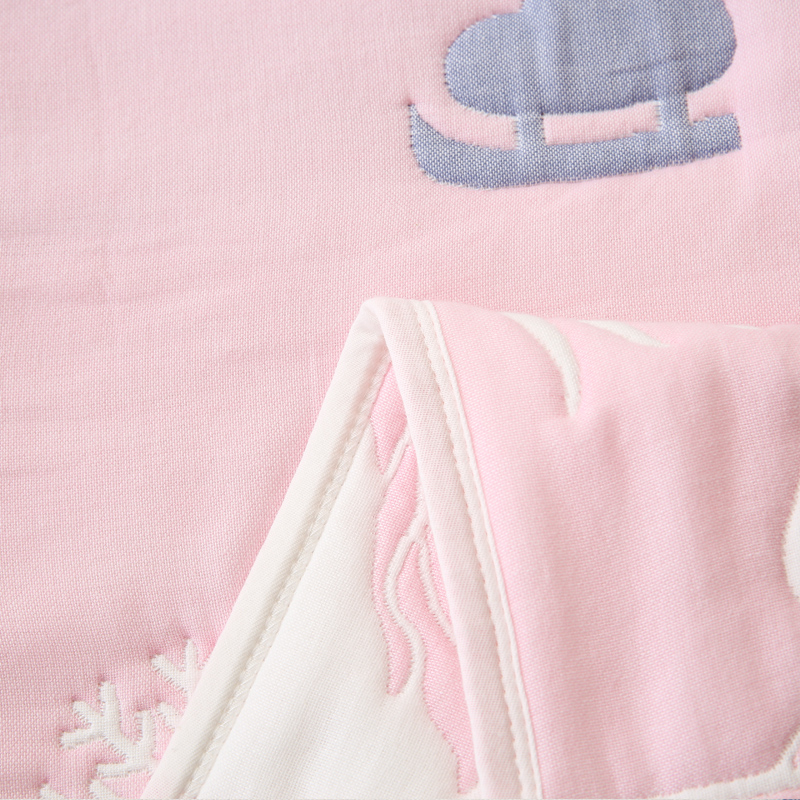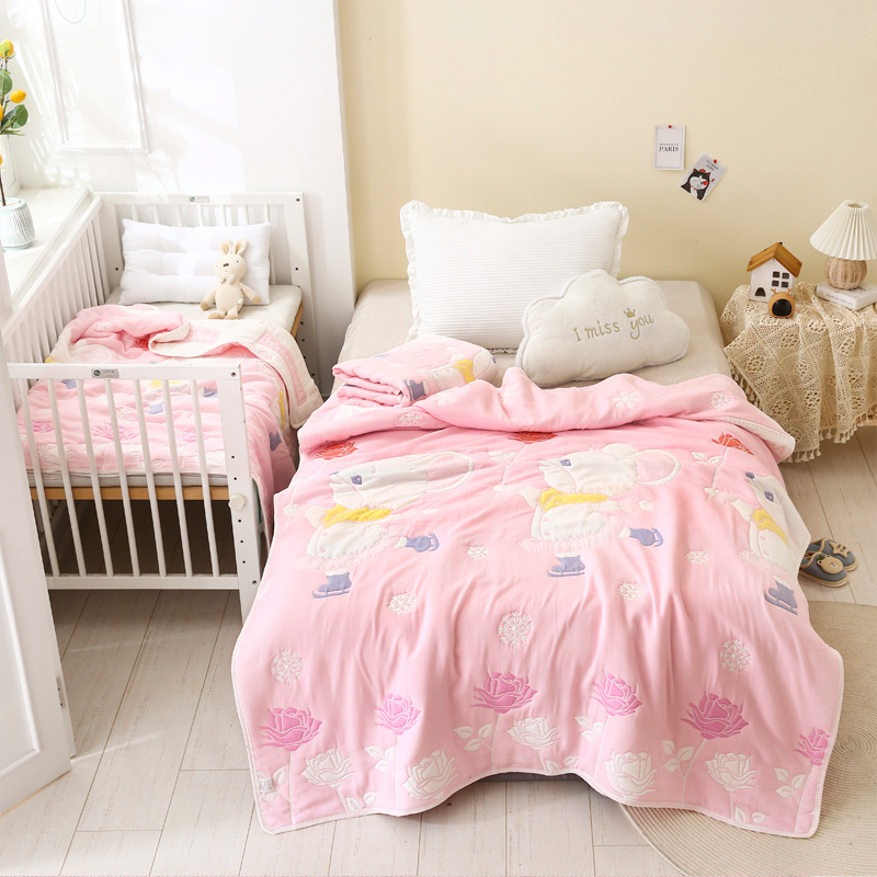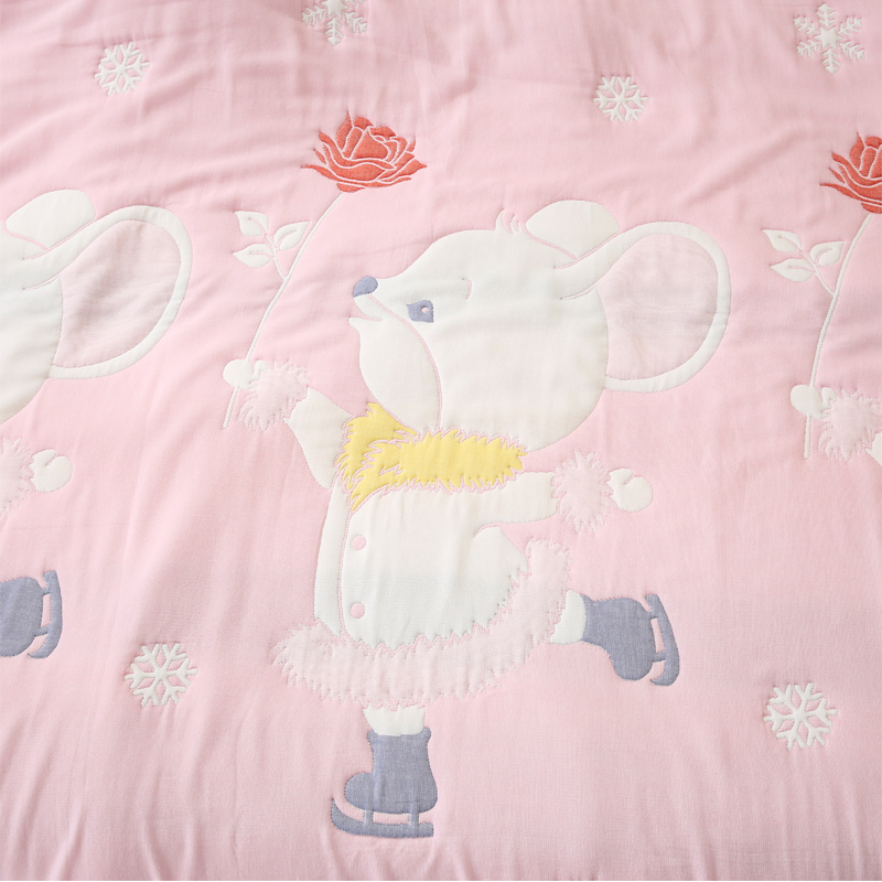 朴尔家纺-毛巾被 2024年全棉十层纱布加厚儿童盖被毛巾被 溜冰鼠粉