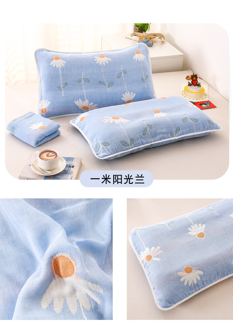 朴尔家纺-毛巾被 2024新款全棉卡通六层纱布儿童枕套 一米阳光兰