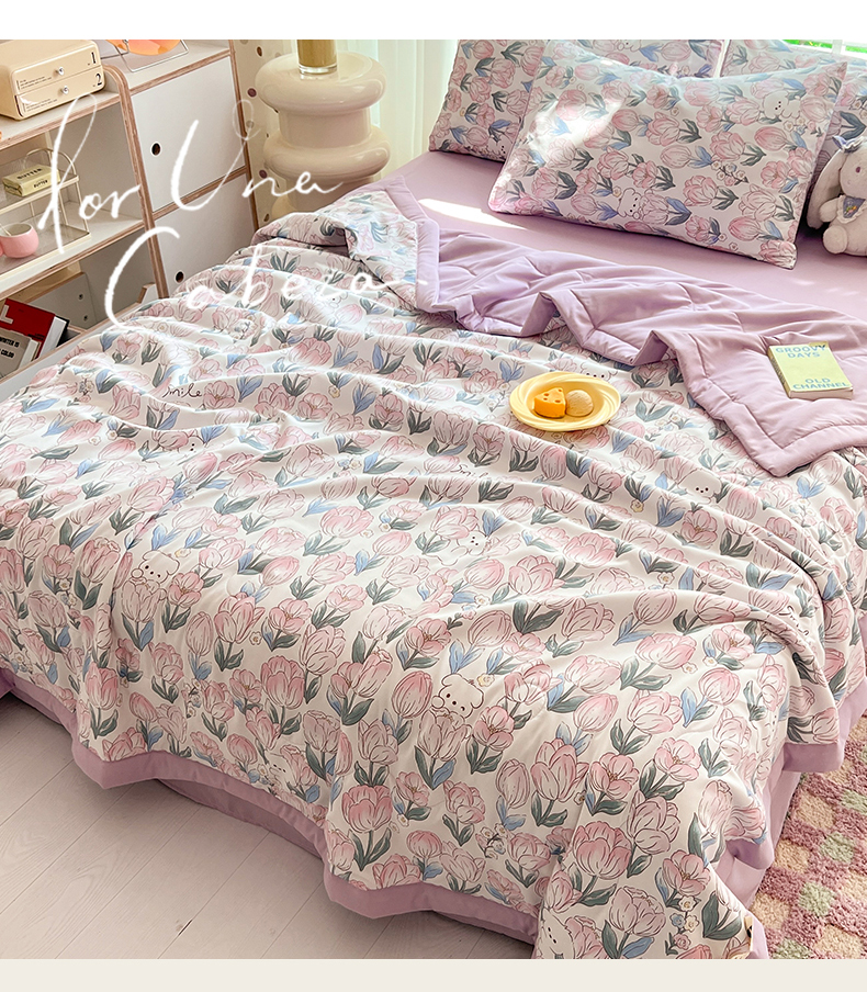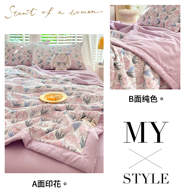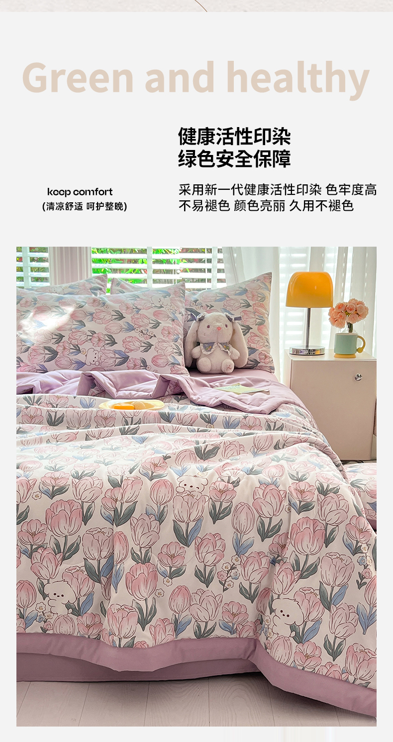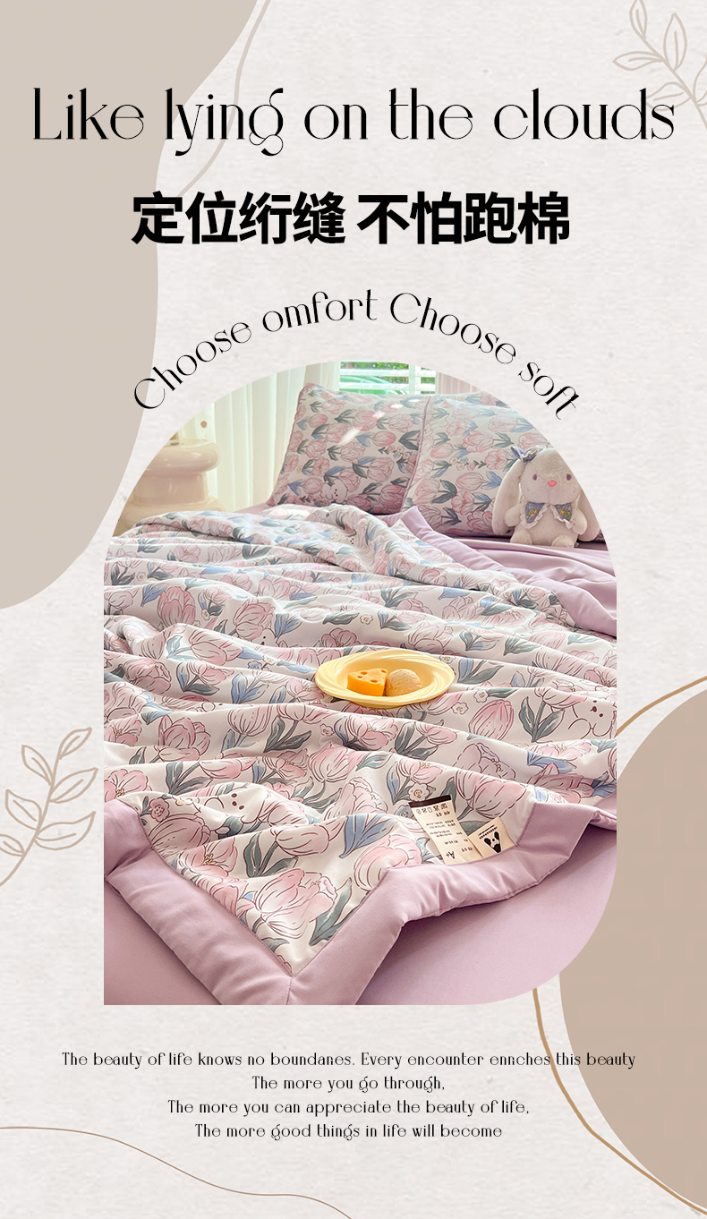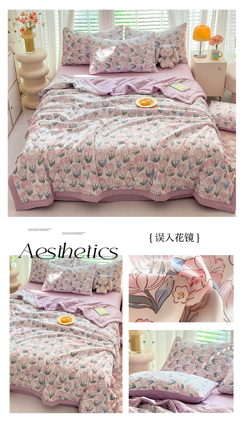 • 91家纺网 家纺一手货源 找家纺 妖妖家纺 2024新款超柔软糯水洗云朵棉印花夏被四件套误入花境