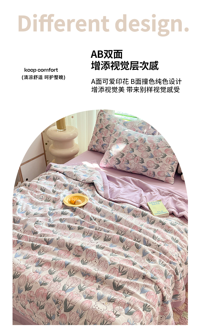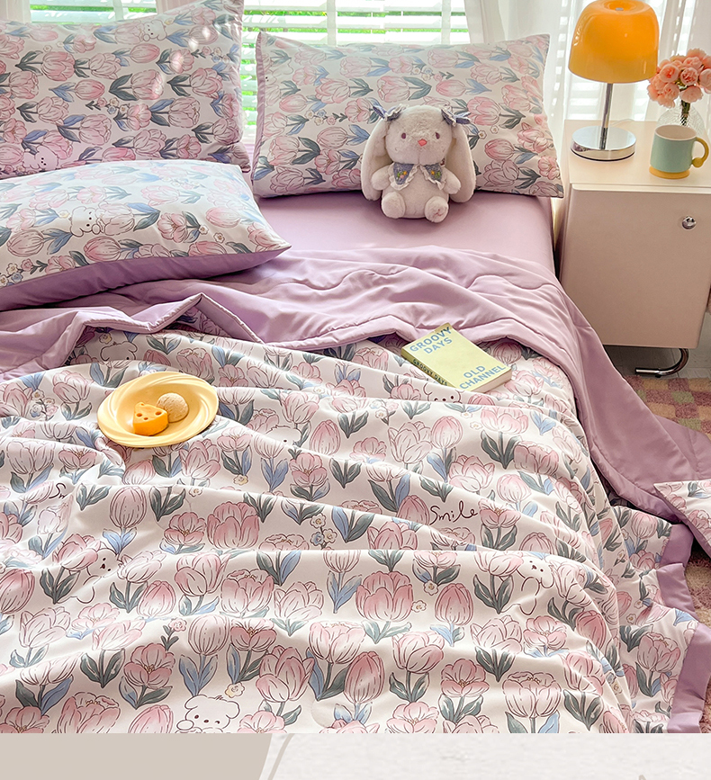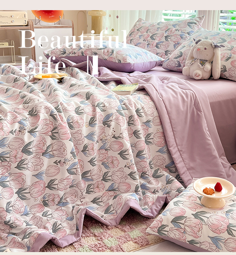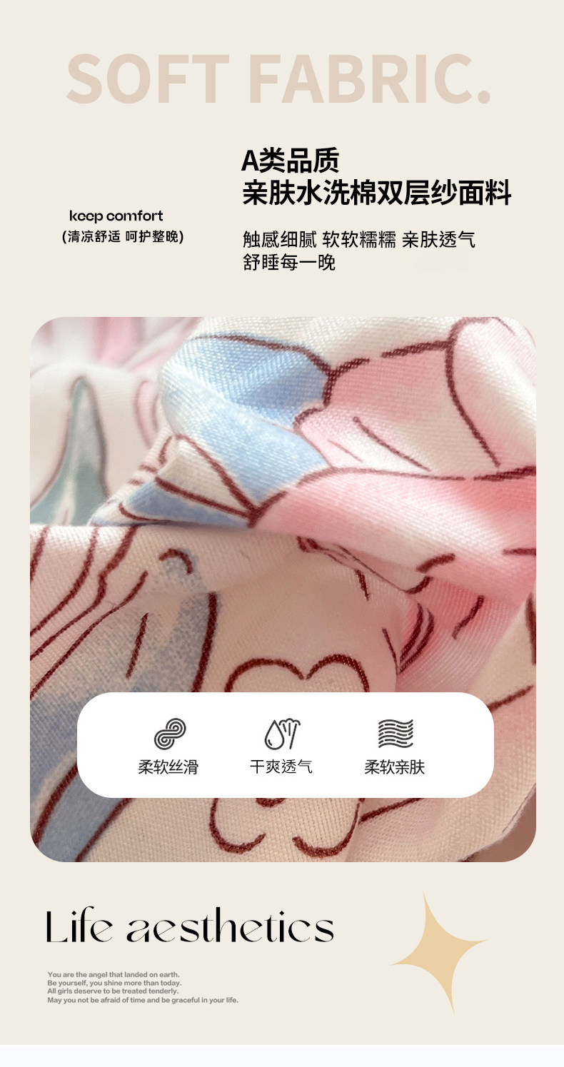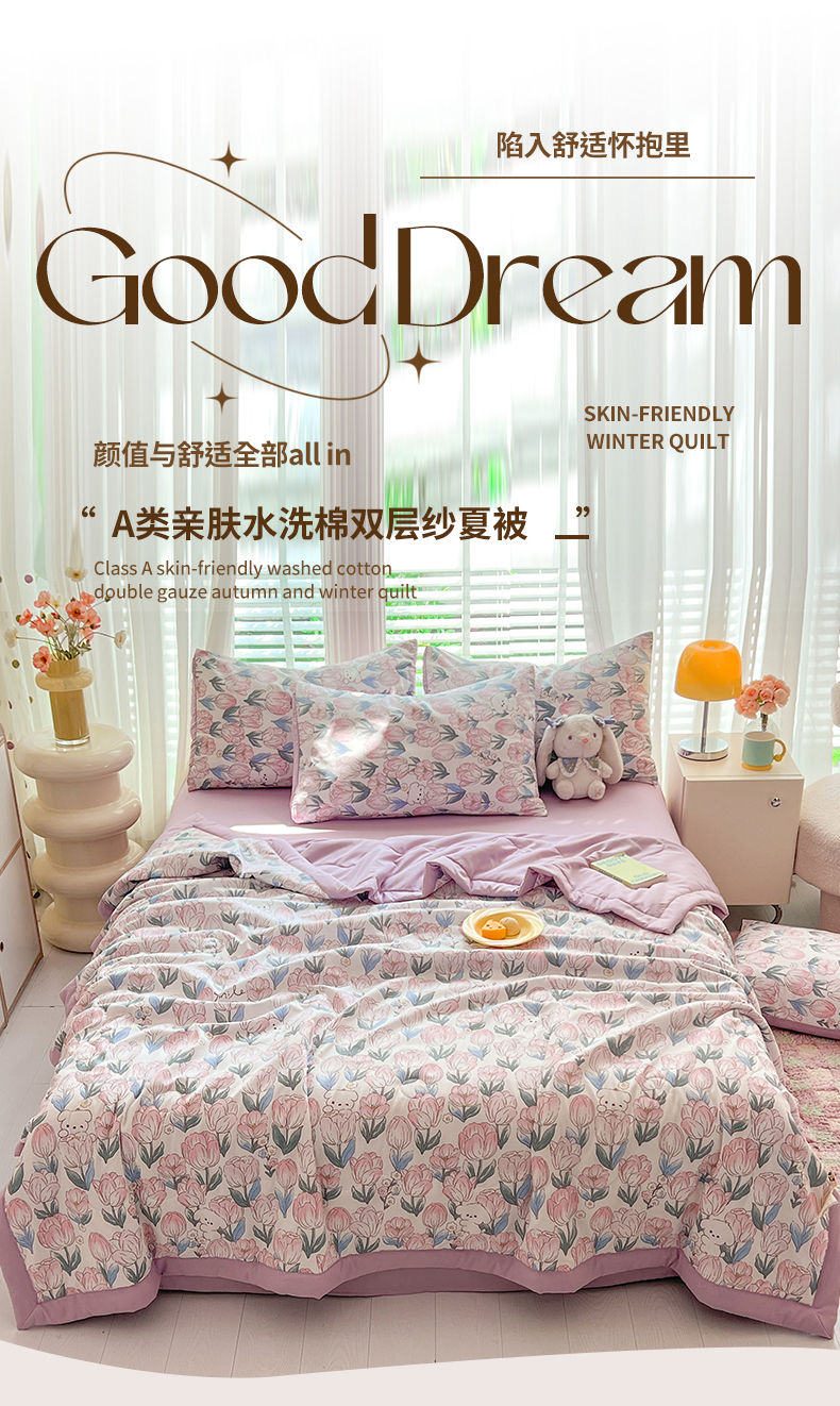 • 91家纺网 家纺一手货源 找家纺 妖妖家纺 2024新款超柔软糯水洗云朵棉印花夏被四件套误入花境