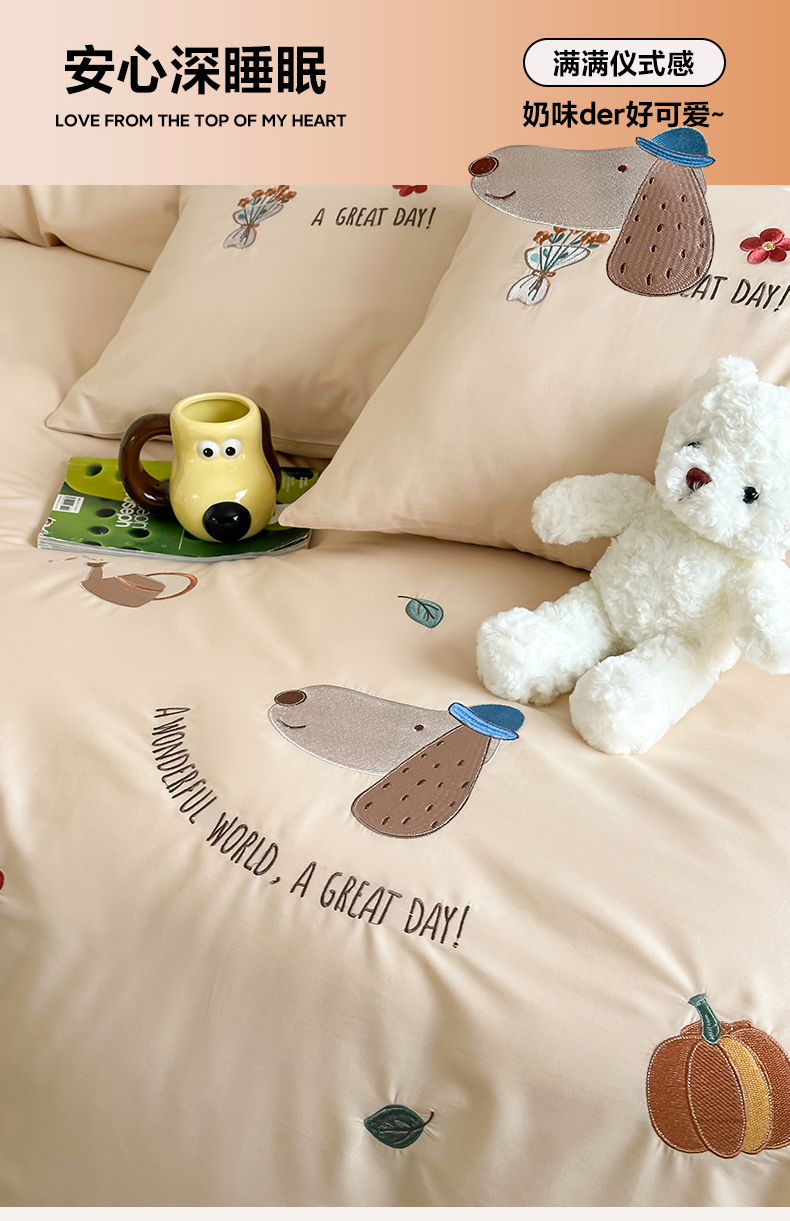 名品优仓 2023新款面包狗系列水洗棉毛巾绣四件套 面包狗,面包狗