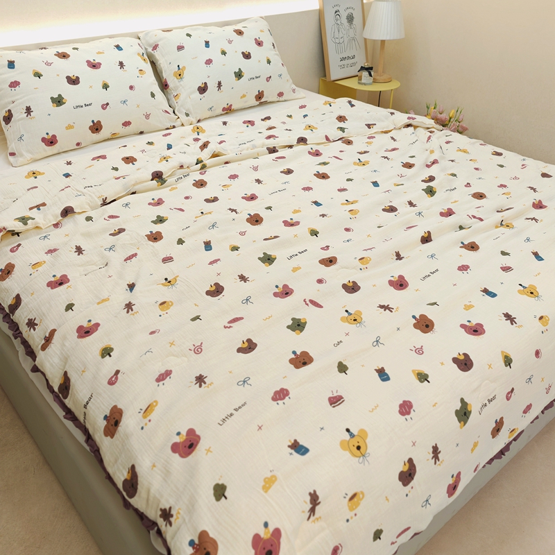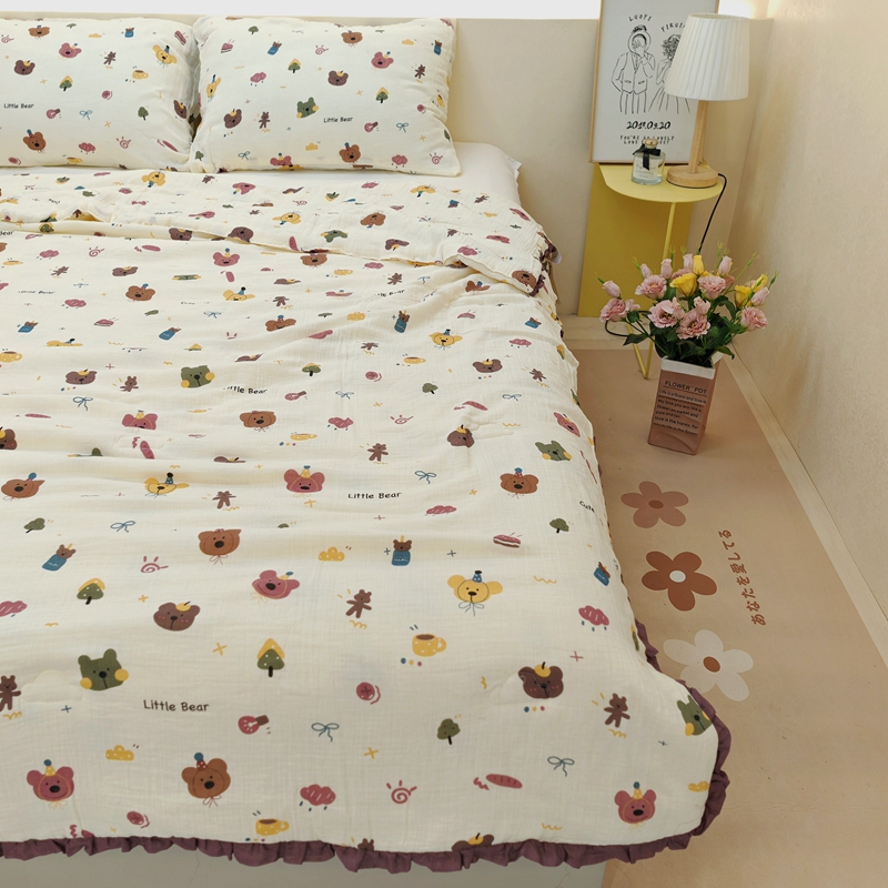 (总)有货 2023新款韩式棉麻泡泡纱印花四季被,艾薇,浪漫,青柠,森林兔,森屿,树莓,桃夭,小可爱,伊甸,樱粟