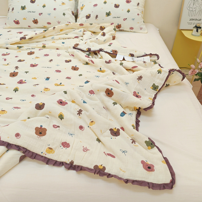 商品名称:有货 2024新款双层皱皱纱大豆被 蛋糕店