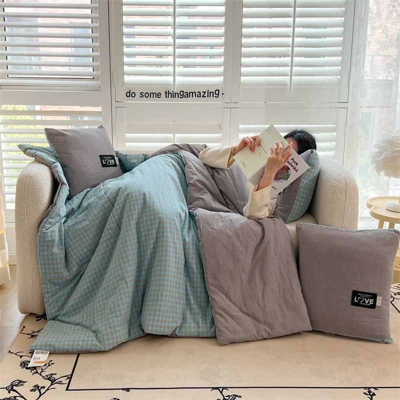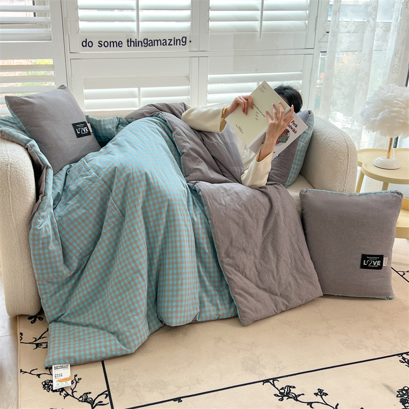 当前位置: 91家纺网 > 商品网购 > 居家日用 > 靠垫/抱枕 > 翰轩家居 2024新款全棉色织水洗棉抱枕被 雅致-绿