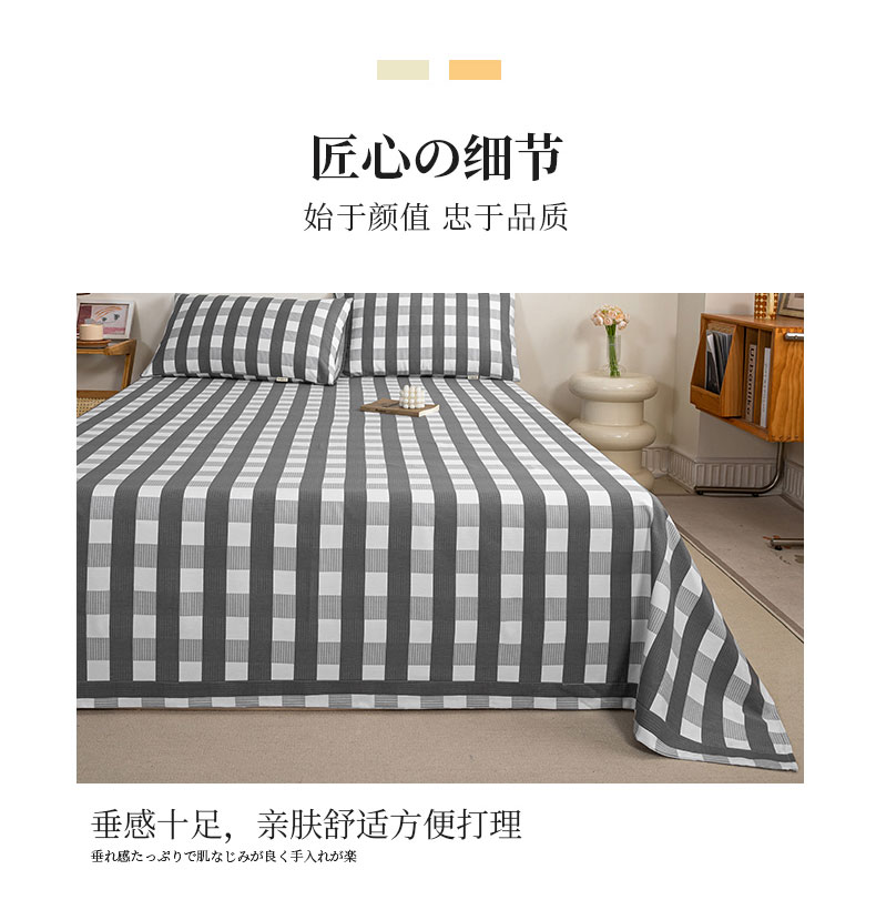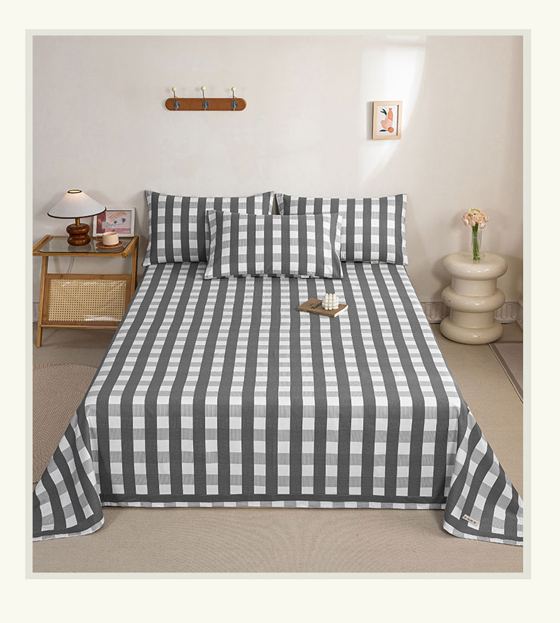 鸣升 新款舒适透气100%全棉老粗布床单 黑小格