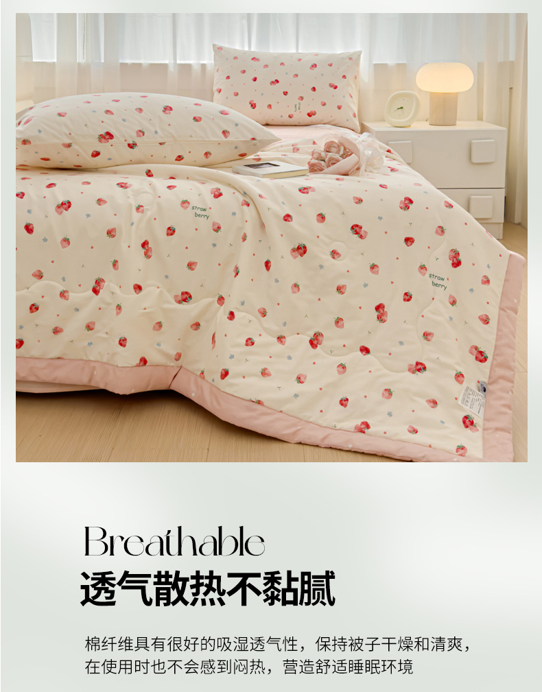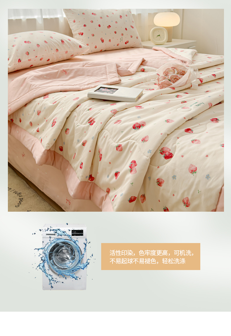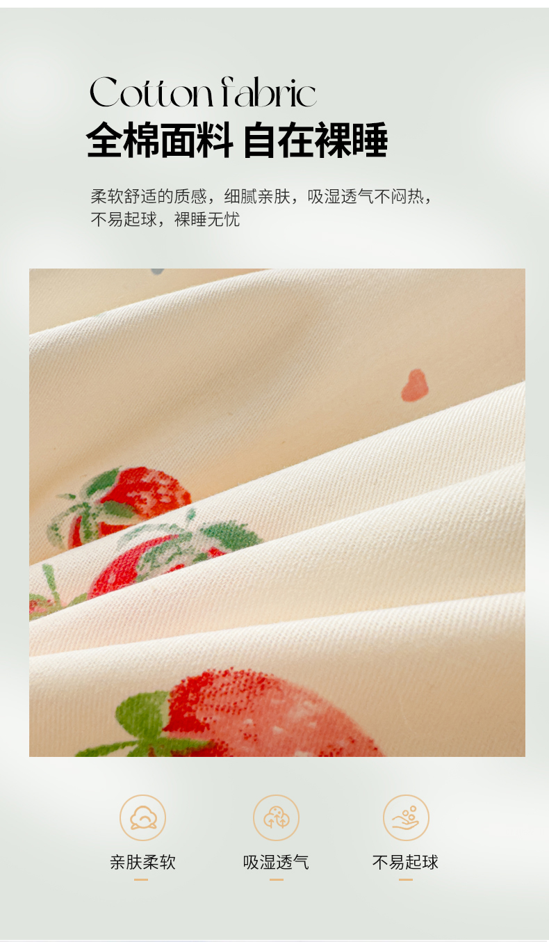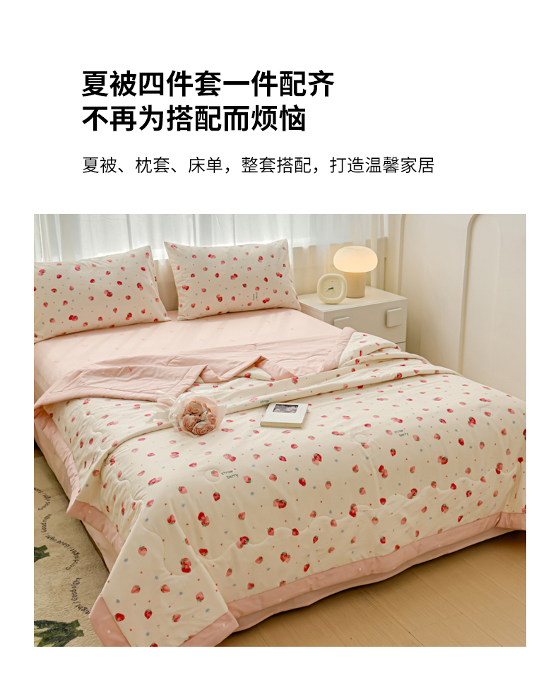 商品名称:金丝鸟家纺 2024新款全棉棉花夏被四件套 清新小草莓